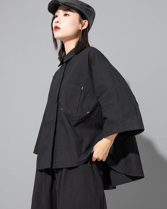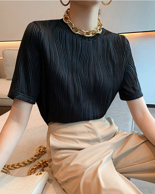 春季歪斜釦設計款半高領上衣