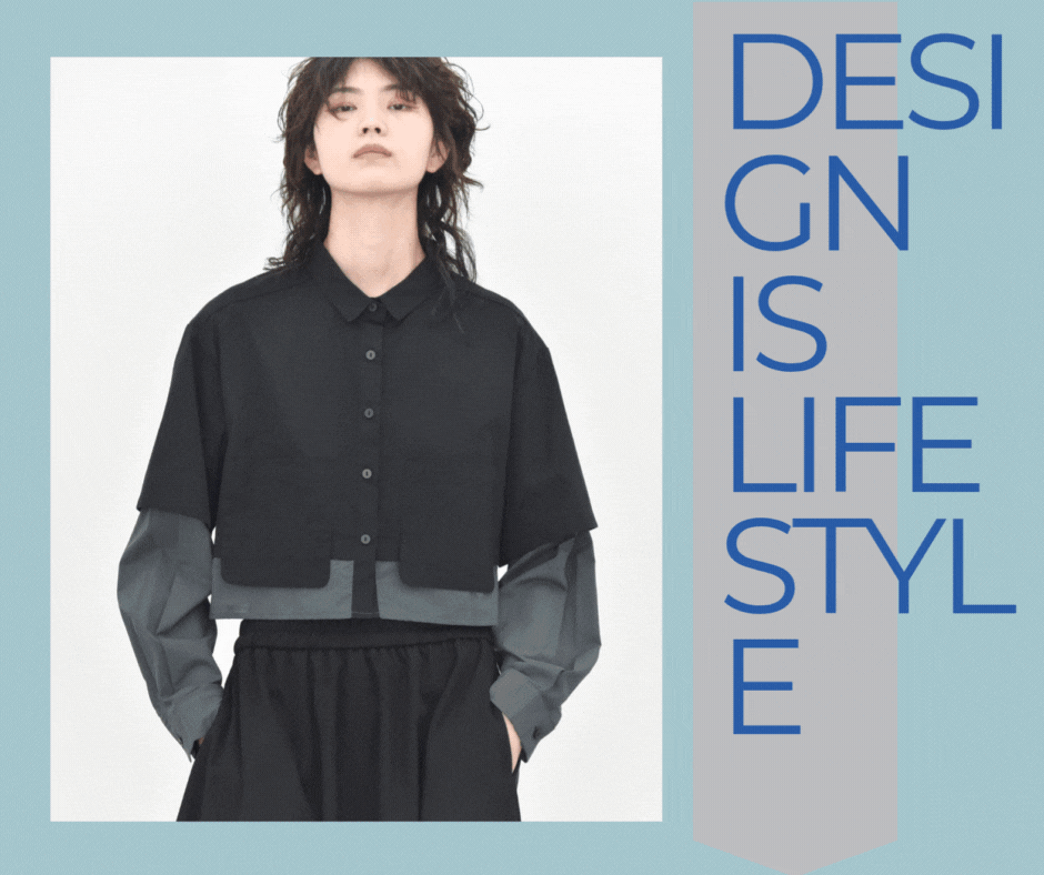 早秋熱銷!/ 撞色假兩件造型短版薄襯衫