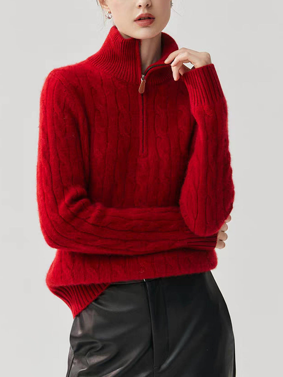 開釦亨利領薄磨毛針織衫