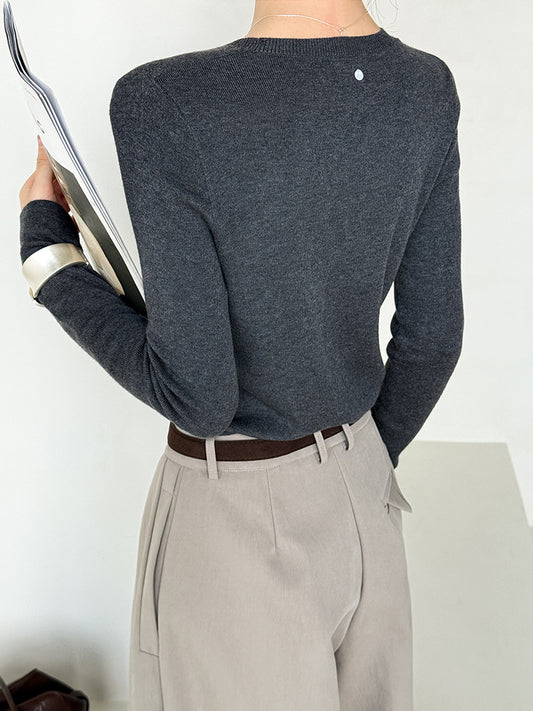 秋冬新款/圓領百搭包色薄毛衣-四色