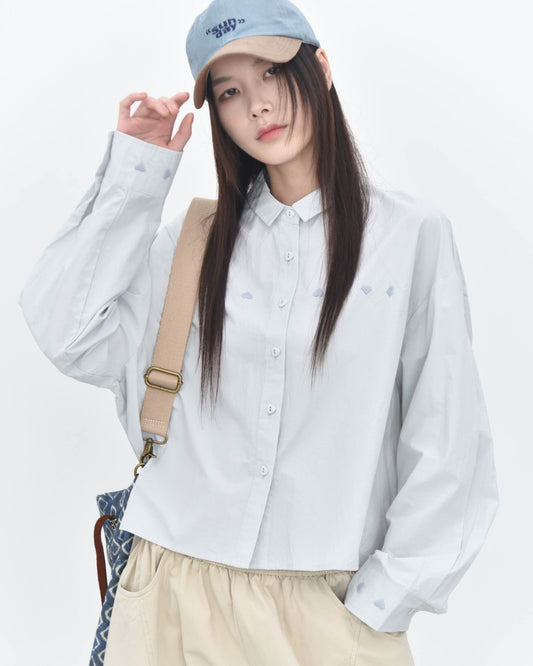 早秋NEW!/ 刺繡小愛心肌理皺感襯衫