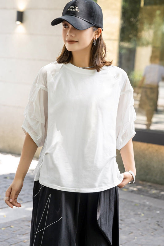 經典款|燕尾領套頭短袖寬鬆顯瘦襯衫