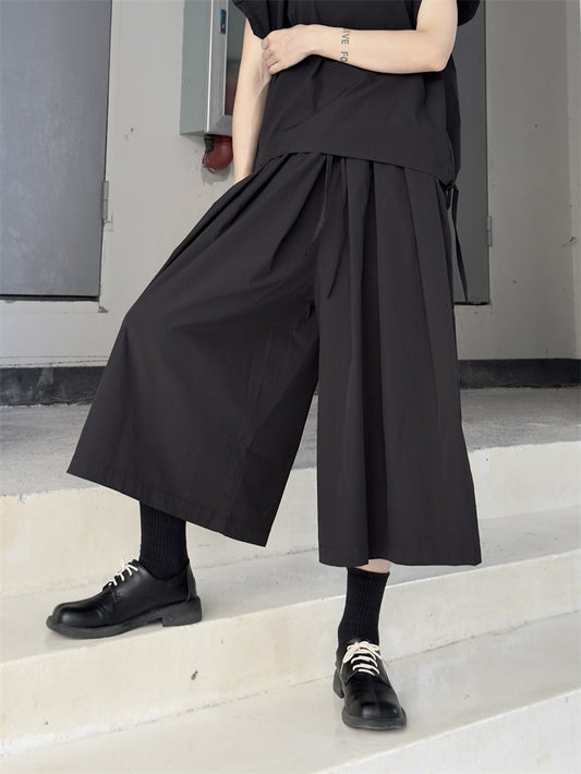經典款|暗黑風寬鬆闊腿褲/情侶裙褲