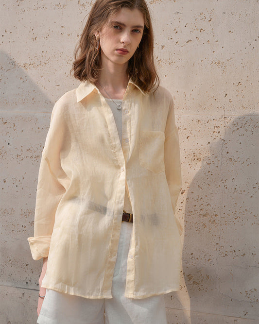 100%亞麻透膚紗防曬日常通勤襯衫『不退不換』