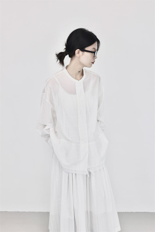 仙氣薄棉紗半透層次下擺無收邊襯衫