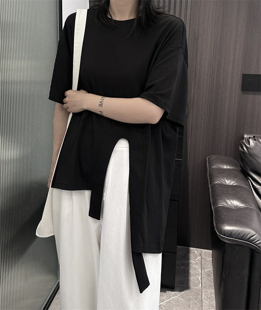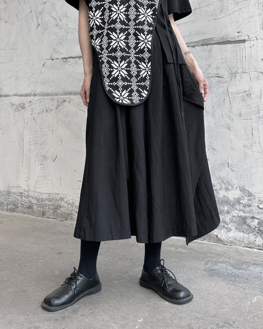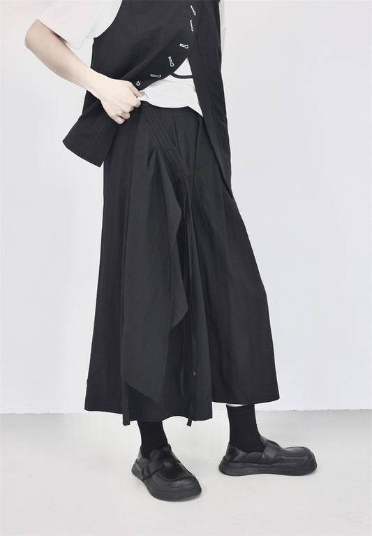 日系暗黑風垂墜寬版疊穿裙褲 (黑)