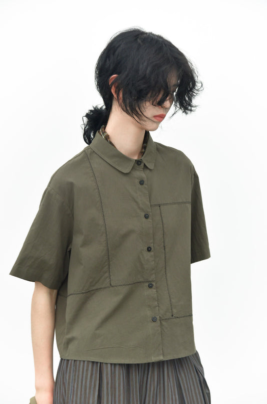 早秋 NEW / 交錯拼接細波浪工法短袖襯衫