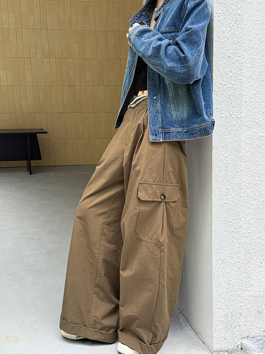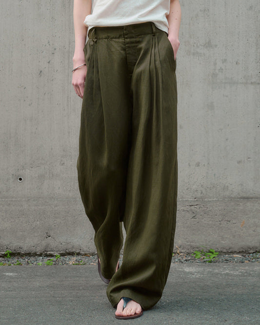 天絲麻|垂寬版打褶寬直筒通勤褲『不退不換』