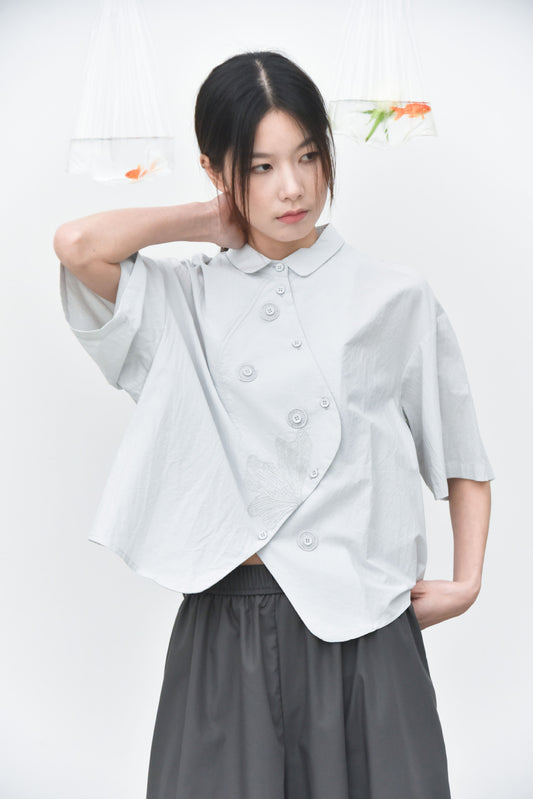 早秋 NEW/ 手工貼花重工弧形門襟襯衫
