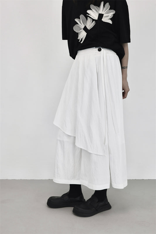日系暗黑風垂墜寬版疊穿裙褲(白)