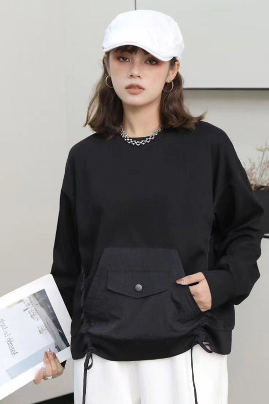 簡約大口袋抽繩軟綿薄長袖(六色)