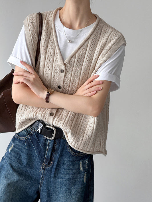 2025秋季新款/ V領開釦鏤空文青造型背心