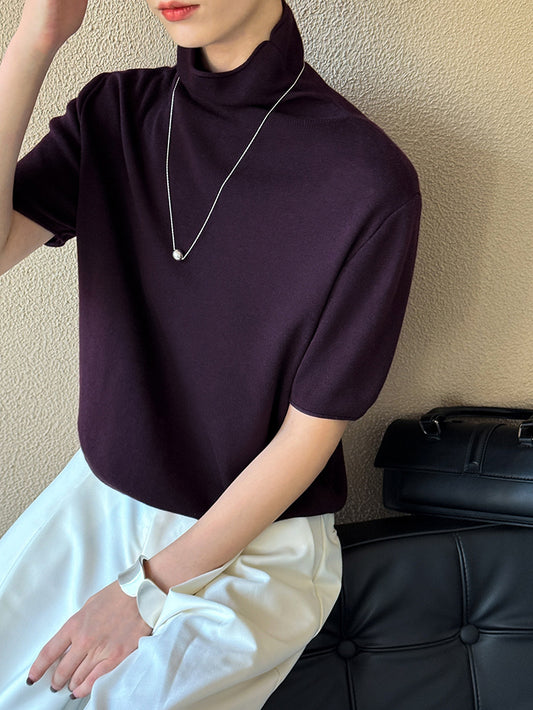 五分袖半高領百搭寬鬆上衣-五色