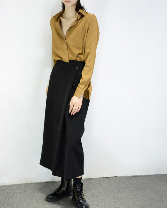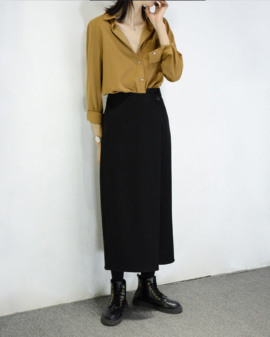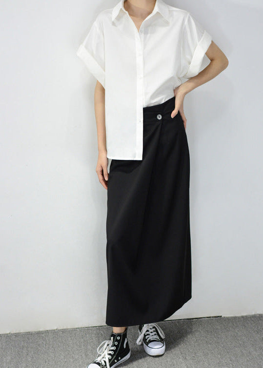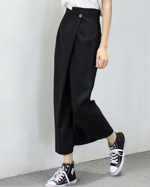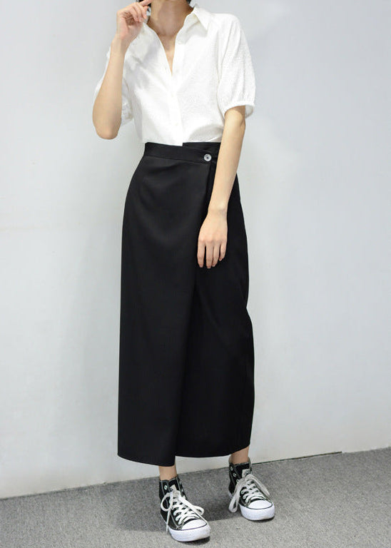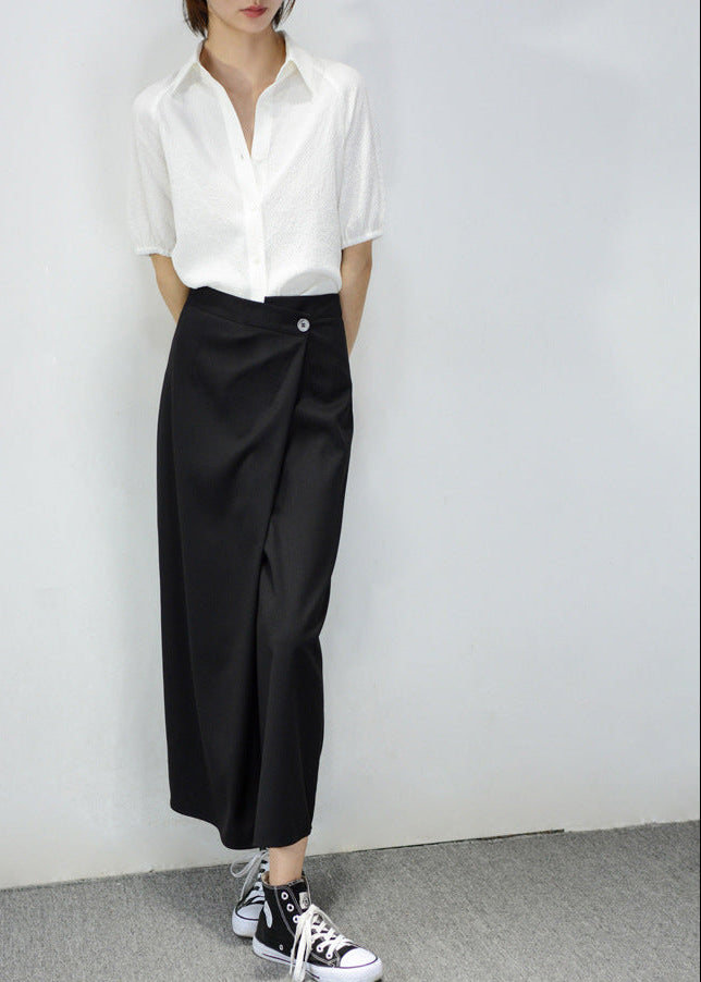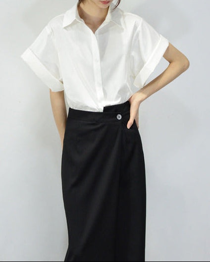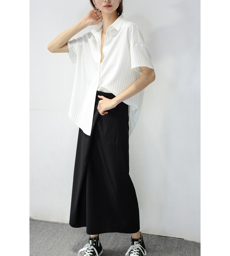 ◼️品名/ 可鹽可甜~一顆扣不對稱八分裙