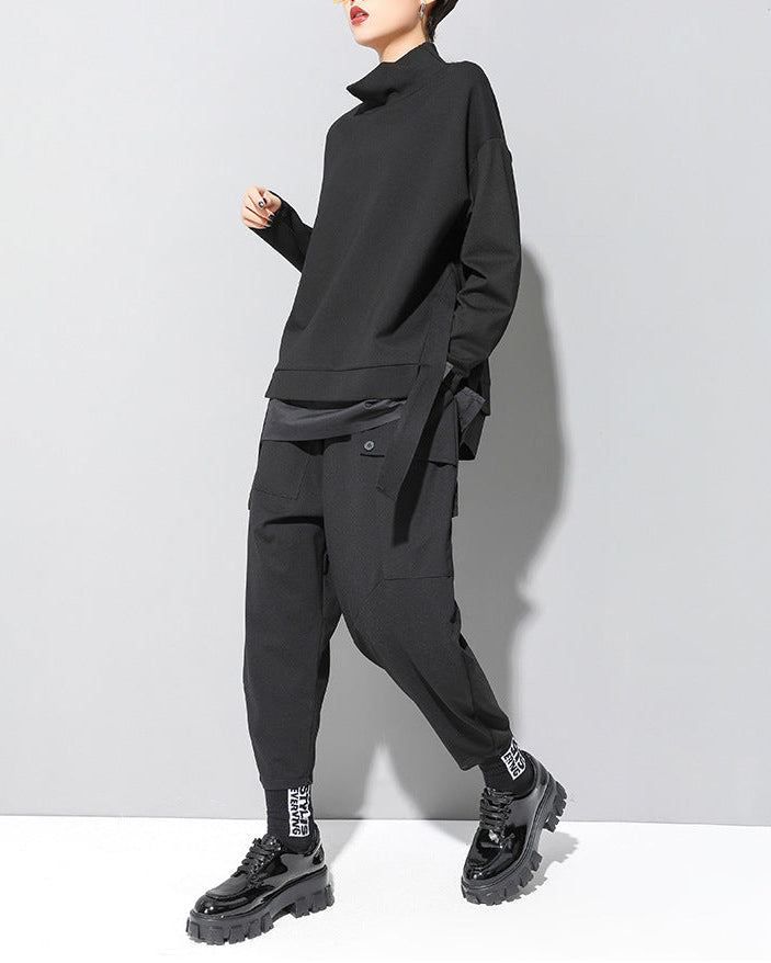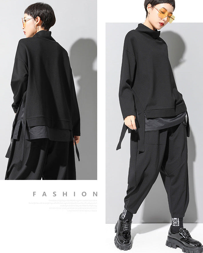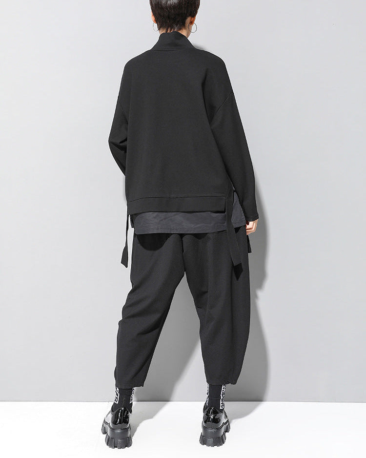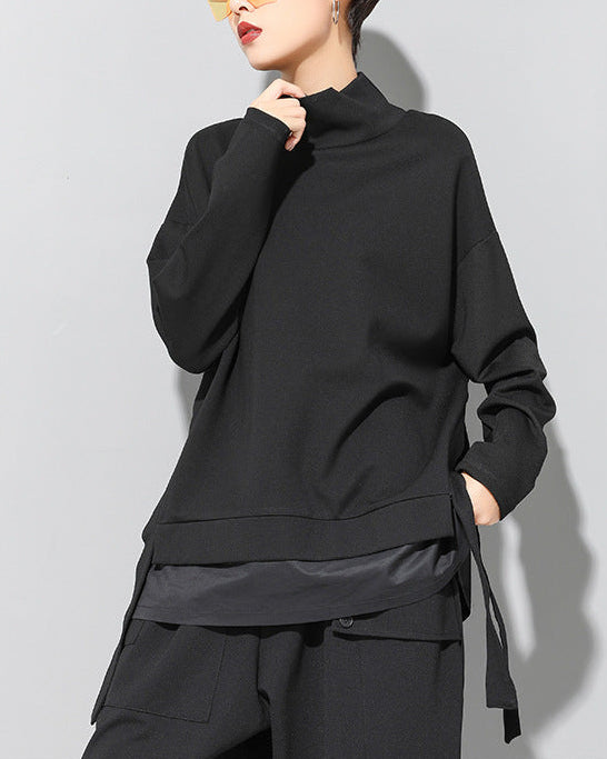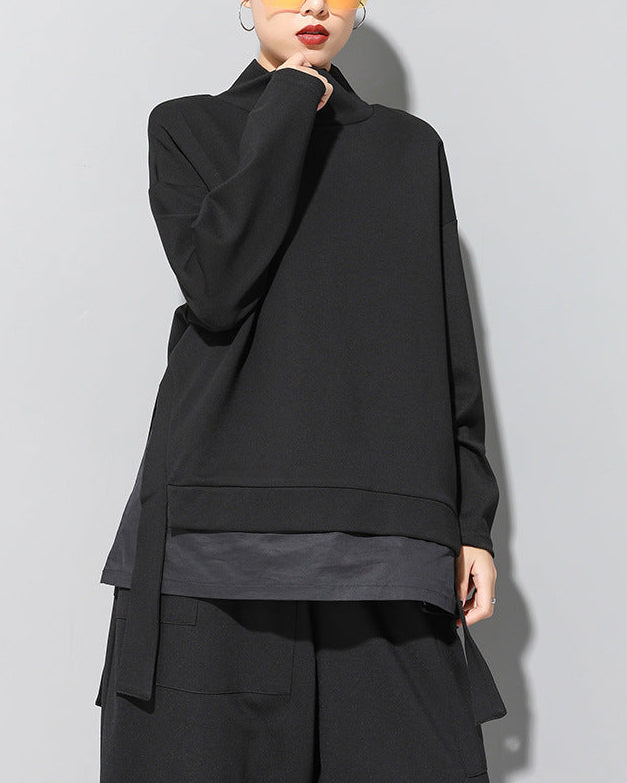 ◼️品名/ 寬鬆層次拼接立領直版造型T恤 99048
