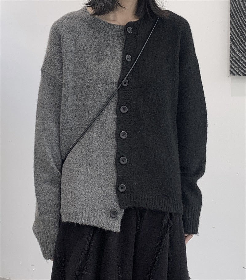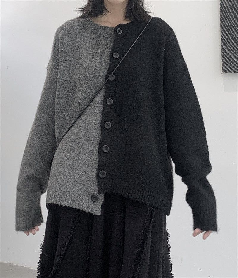 ◼️品名/ 情侶款寬鬆黑灰拼接毛衣外套