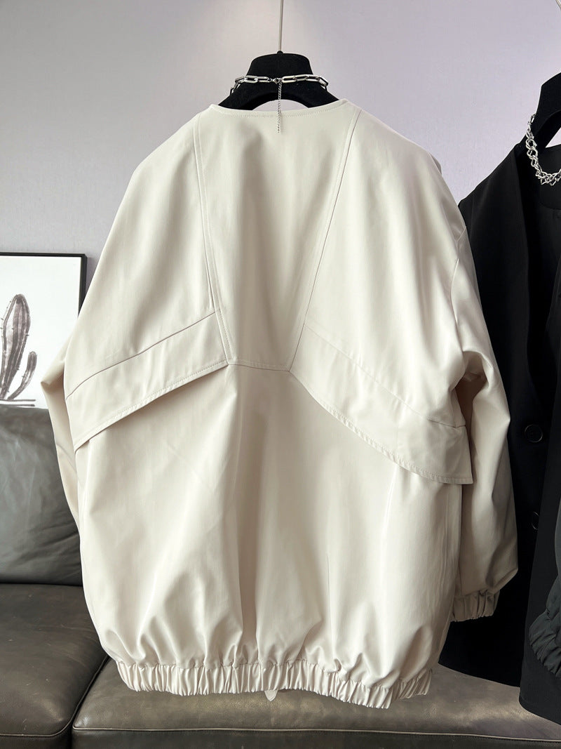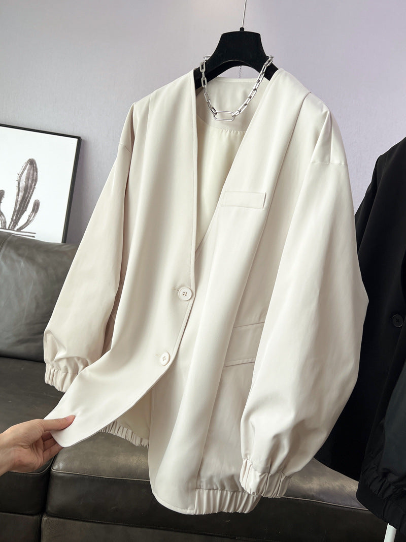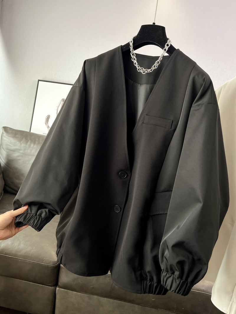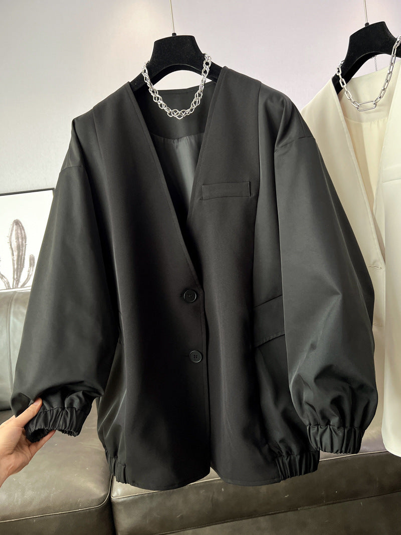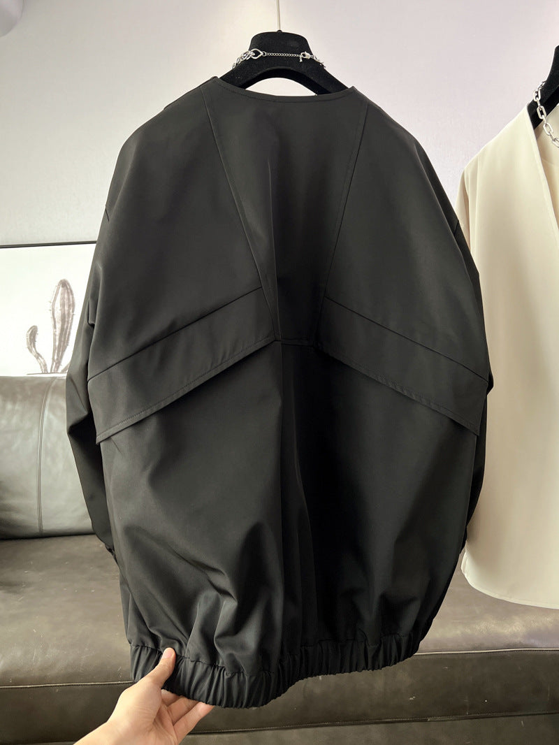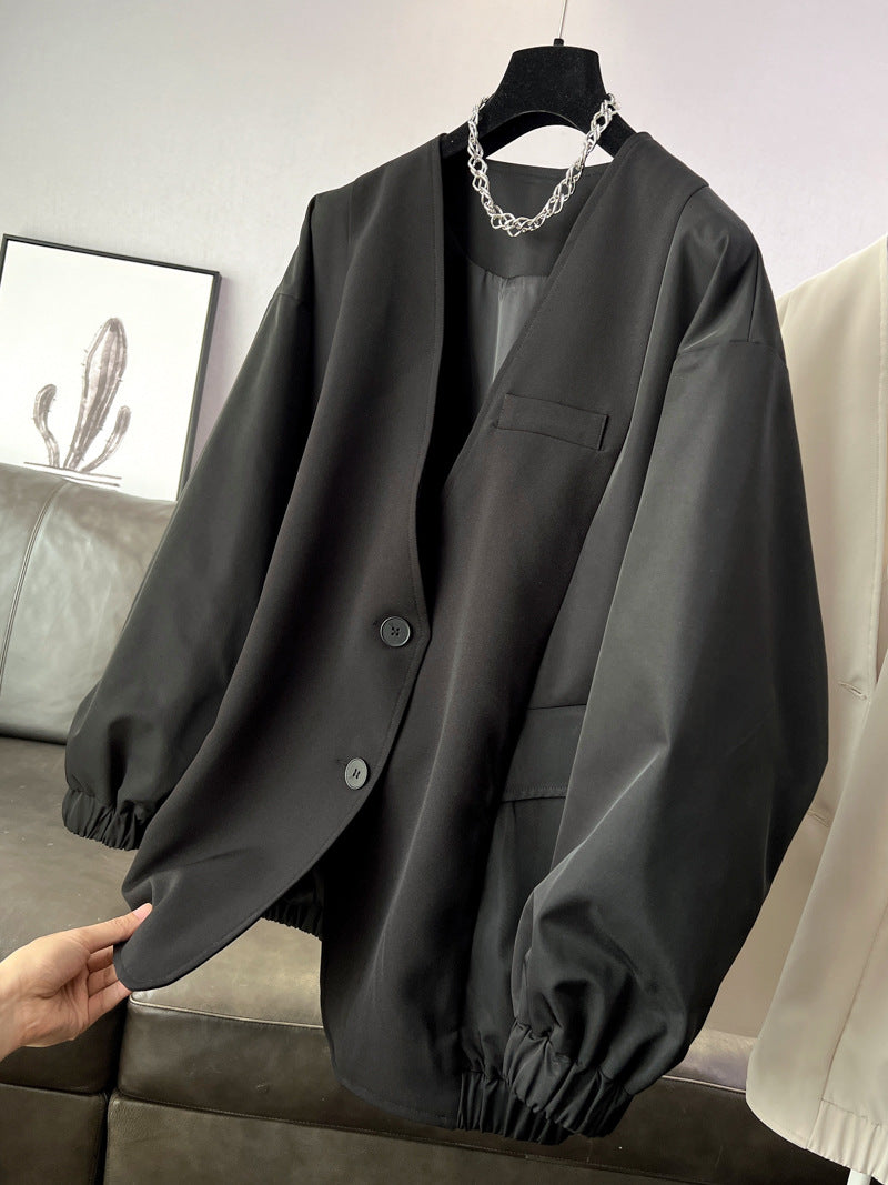 時尚設計V領寬鬆外套中版風衣