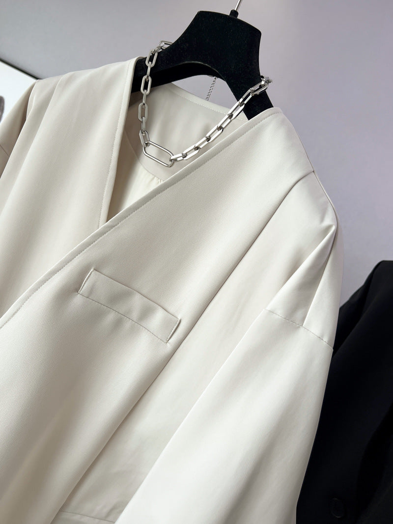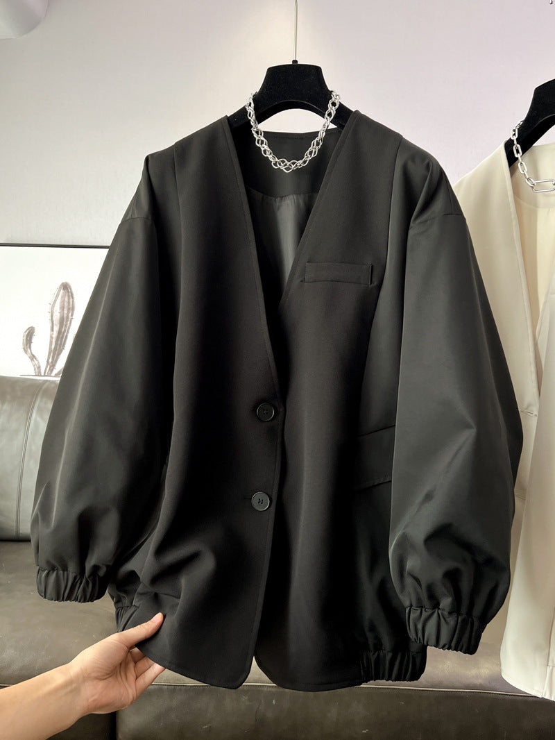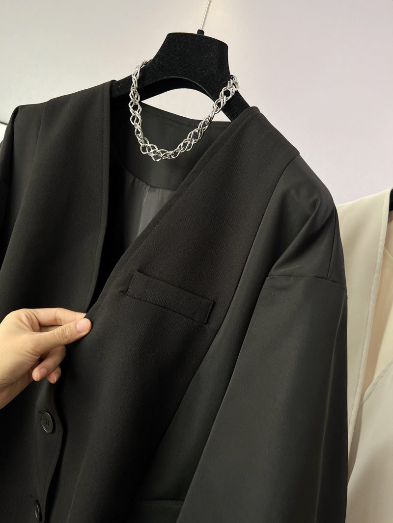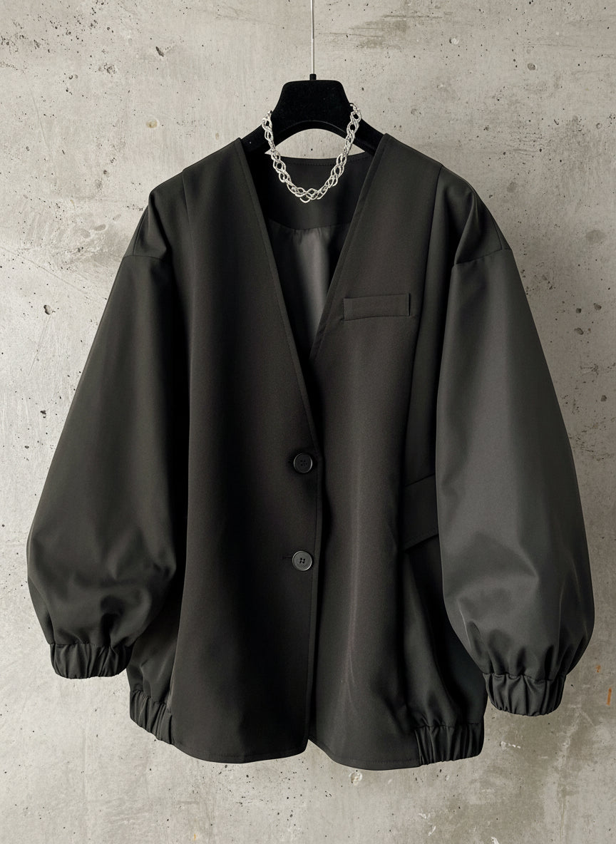 ◼️品名/ 時尚設計V領寬鬆外套中版風衣