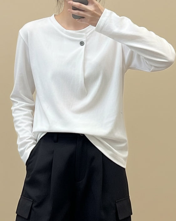 ◼️品名/ 春季韓版一粒扣簡約長袖T卹