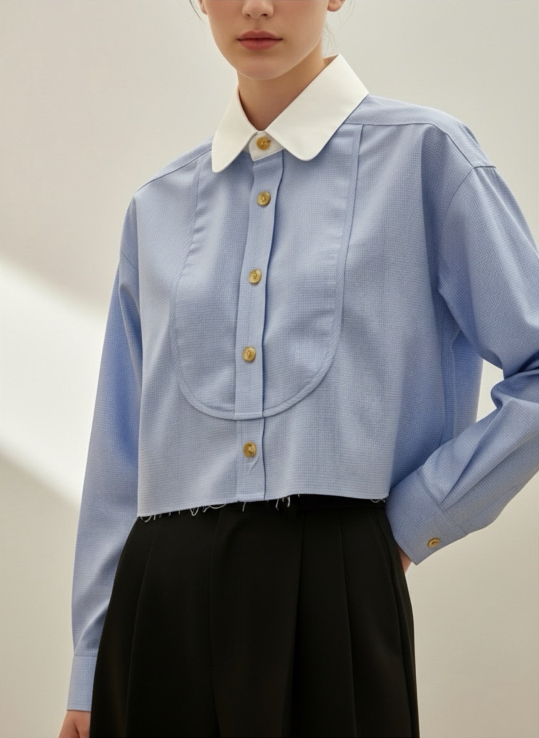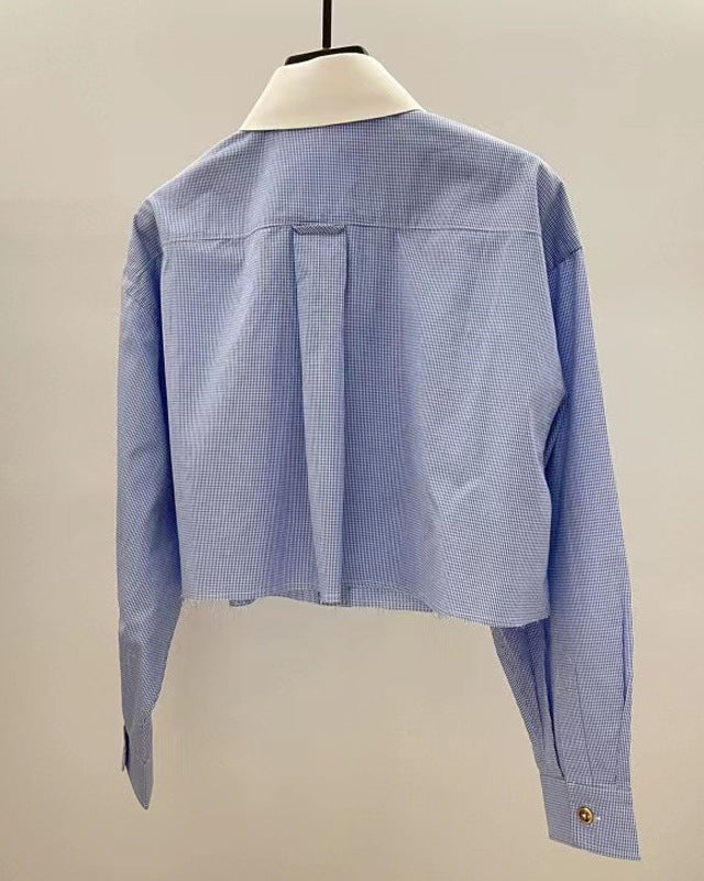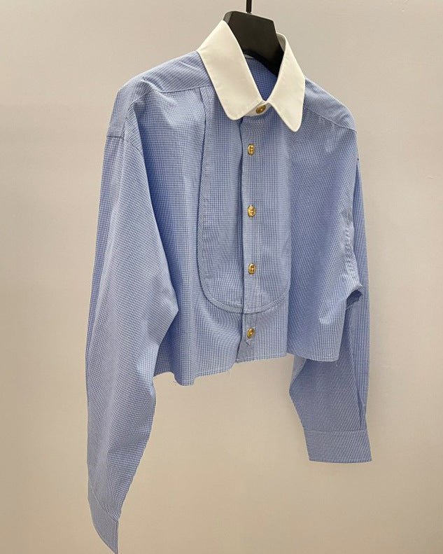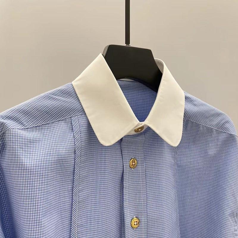 法式時尚翻领小眾設計造型短襯衫