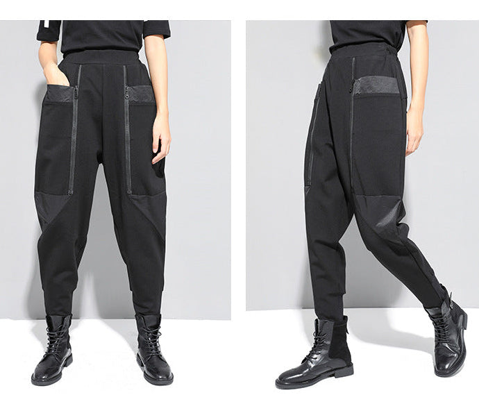 ◼️品名/ 秋冬拉鍊拼接設計款個性縮口褲8857