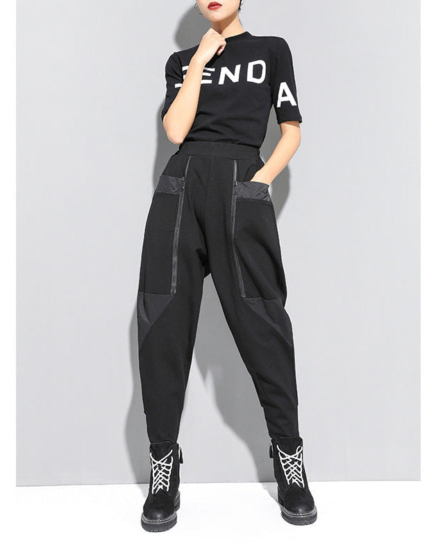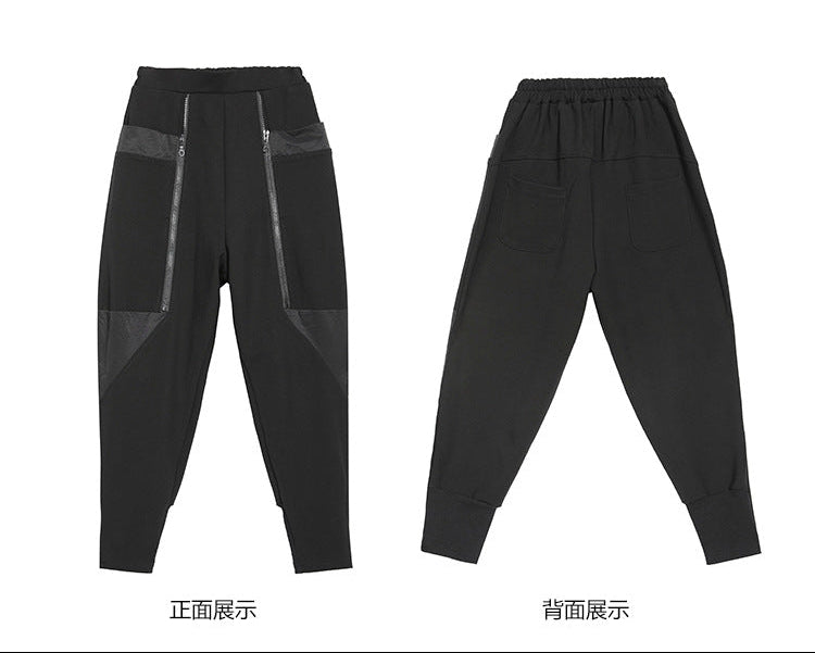 秋冬拉鍊拼接設計款個性縮口褲8857
