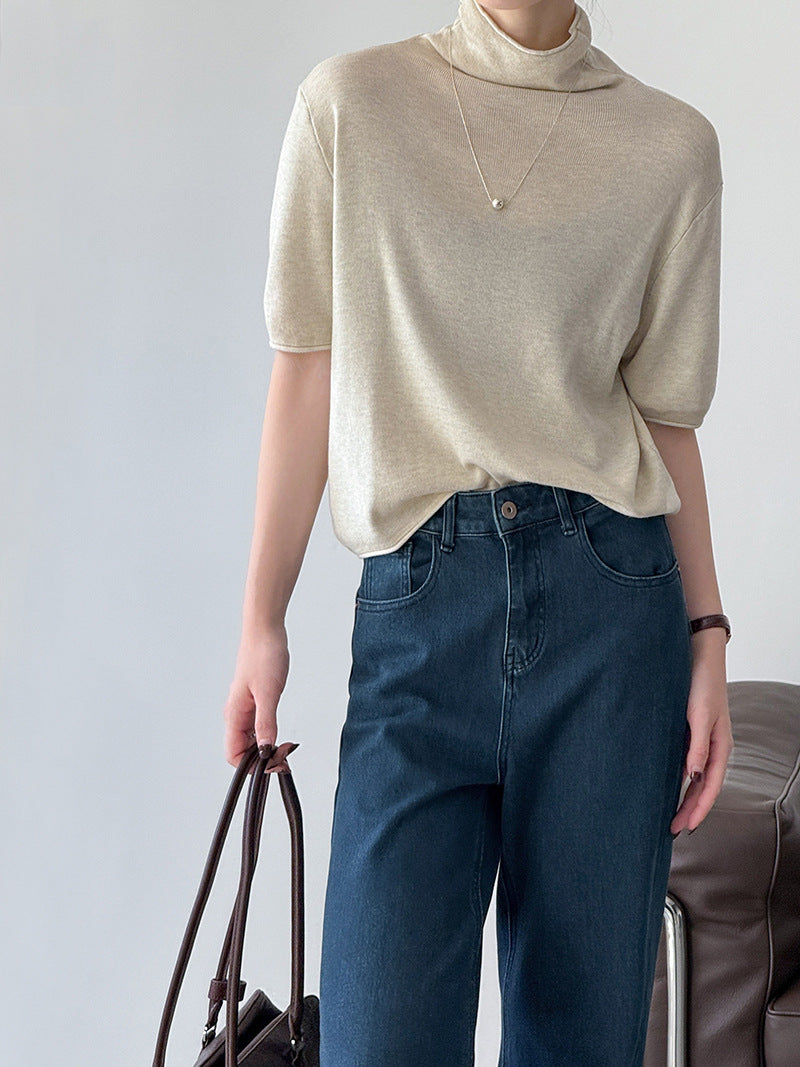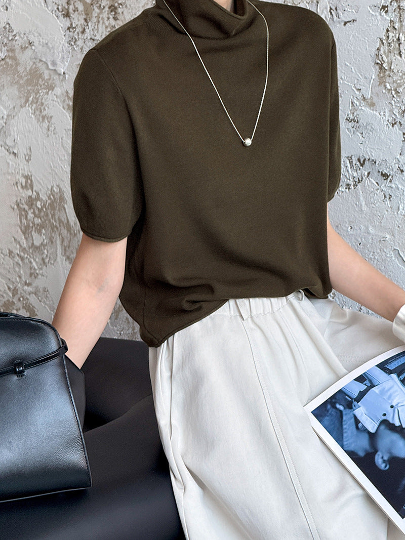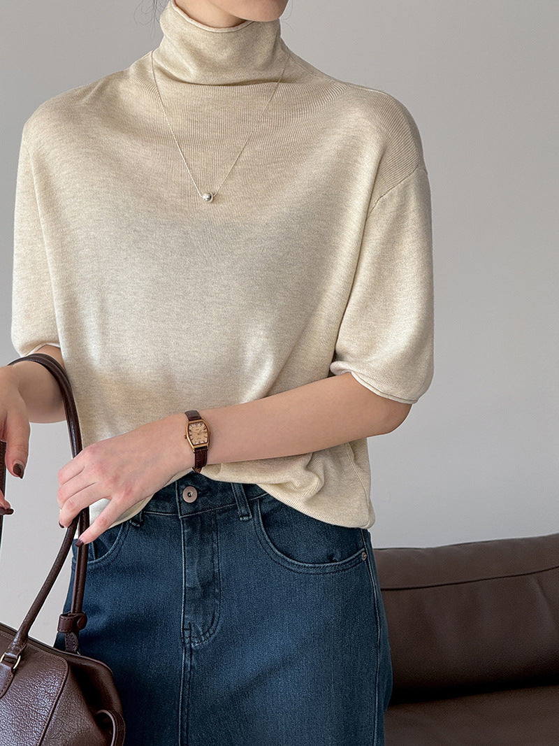 半高領五分袖毛衣,超實穿!