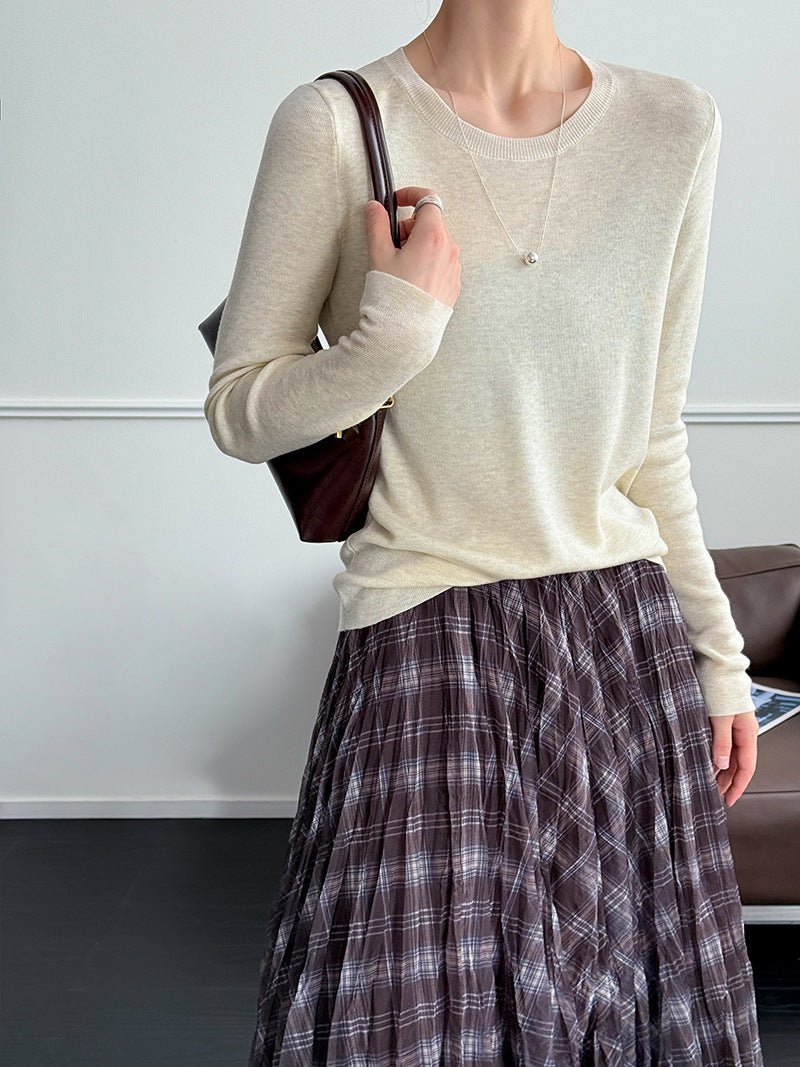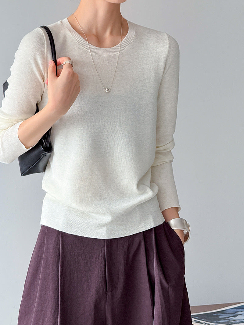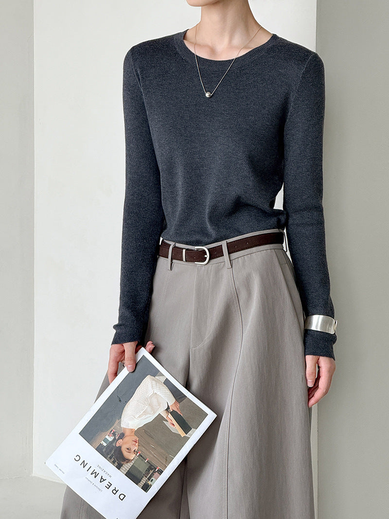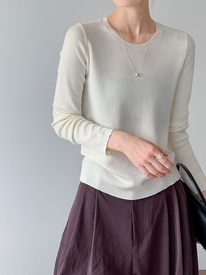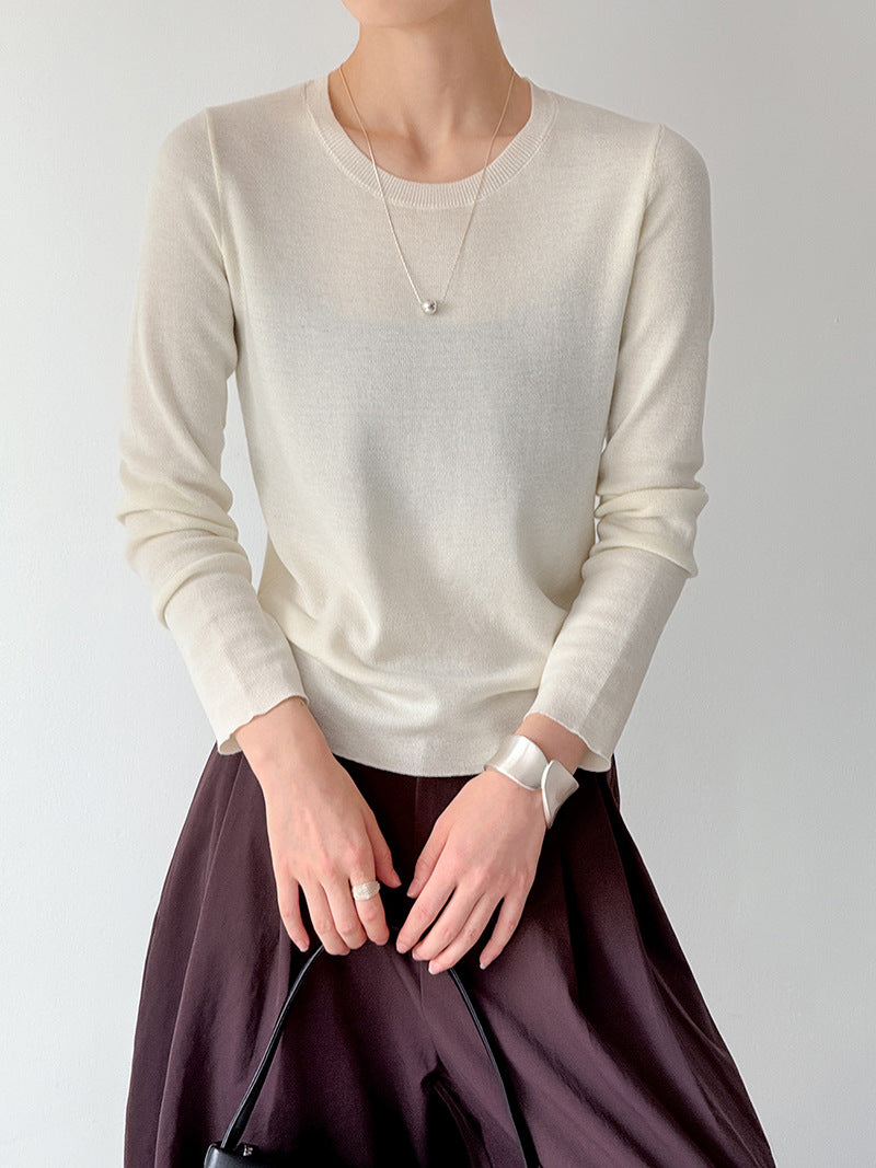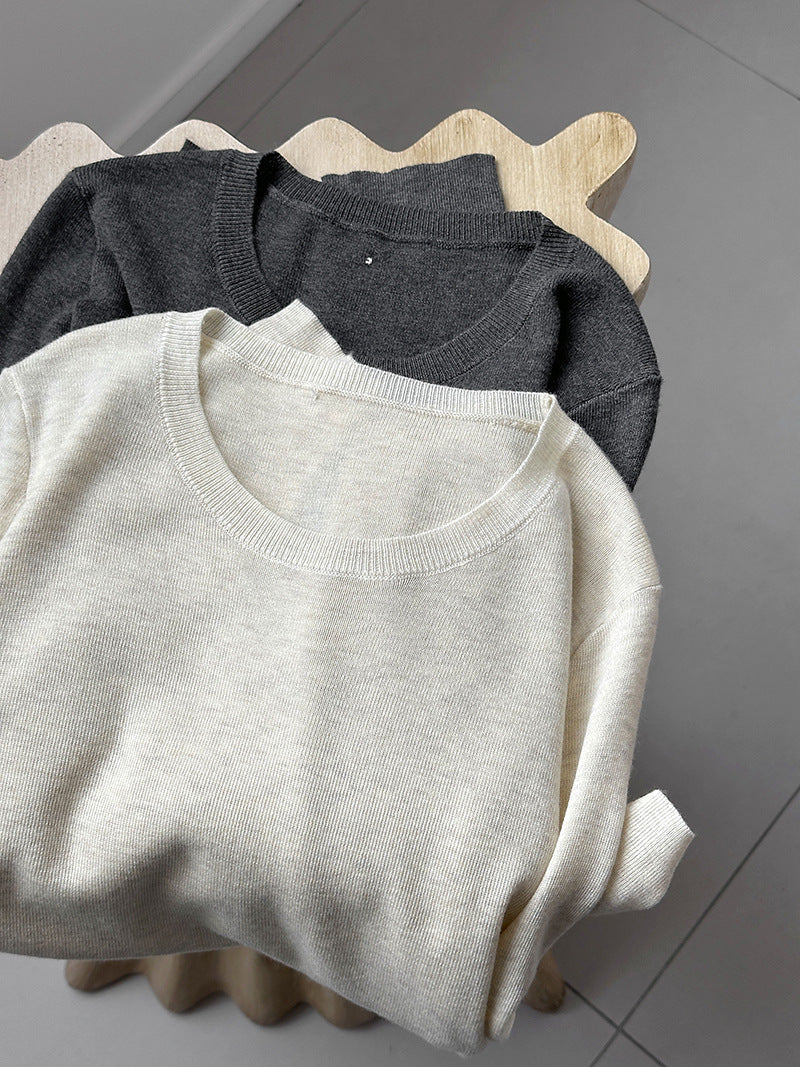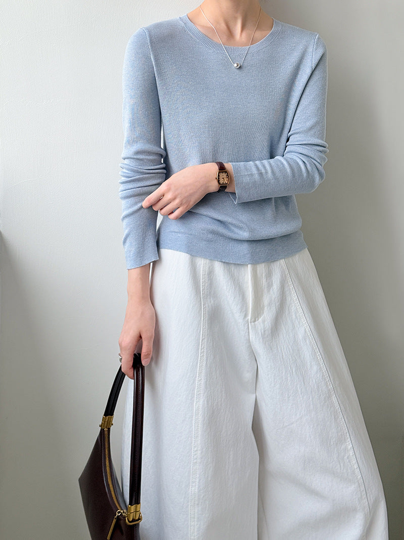 小圓領薄毛衣,修身微寬鬆,