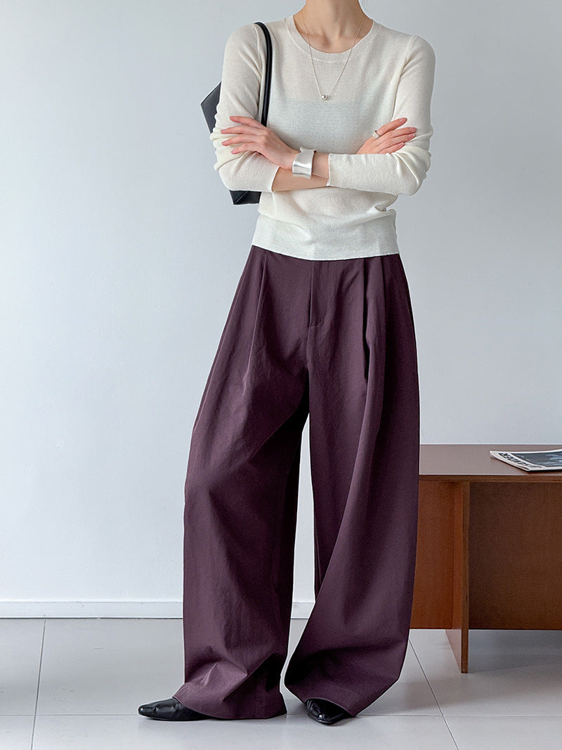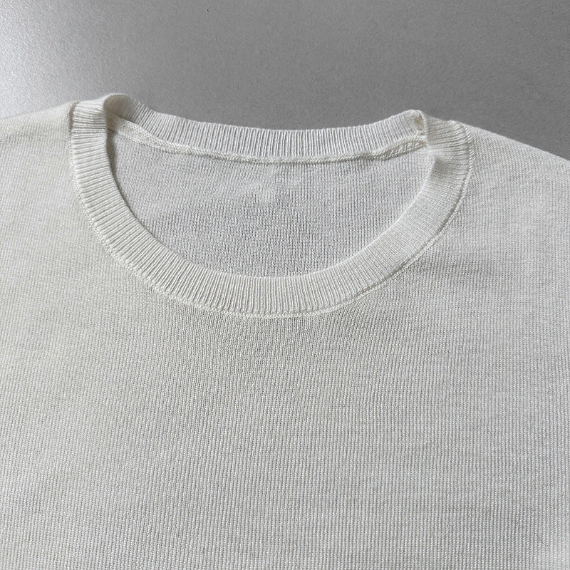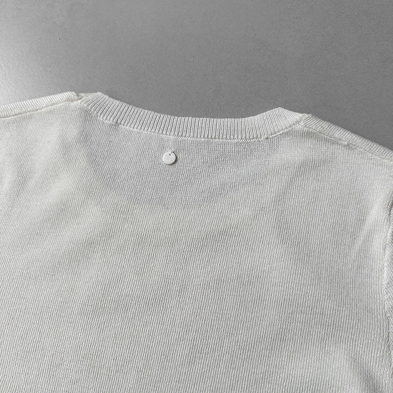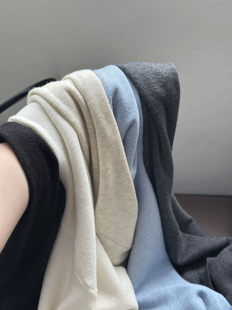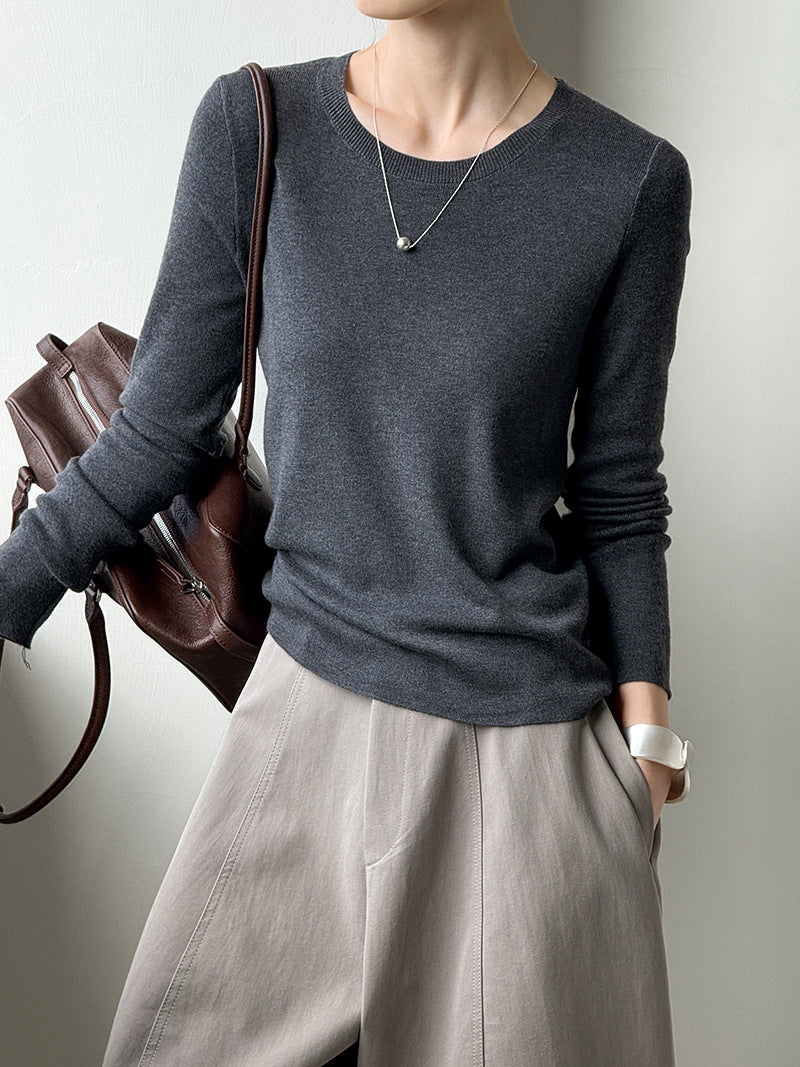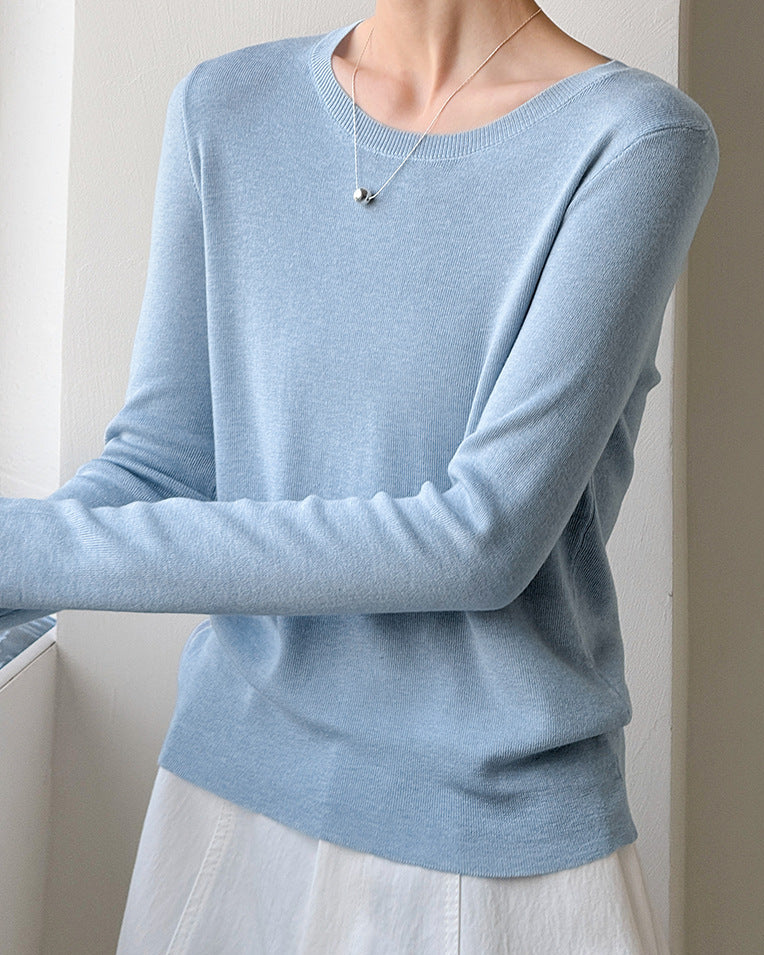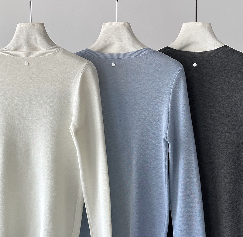 小圓領薄毛衣,修身微寬鬆,