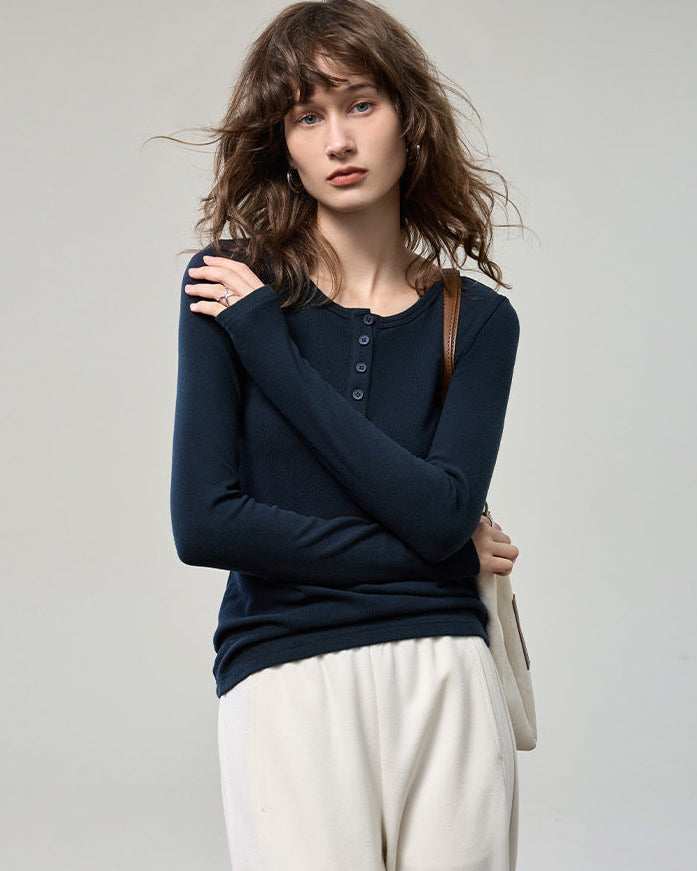 ◼️品名/ 開釦亨利領薄磨毛針織衫