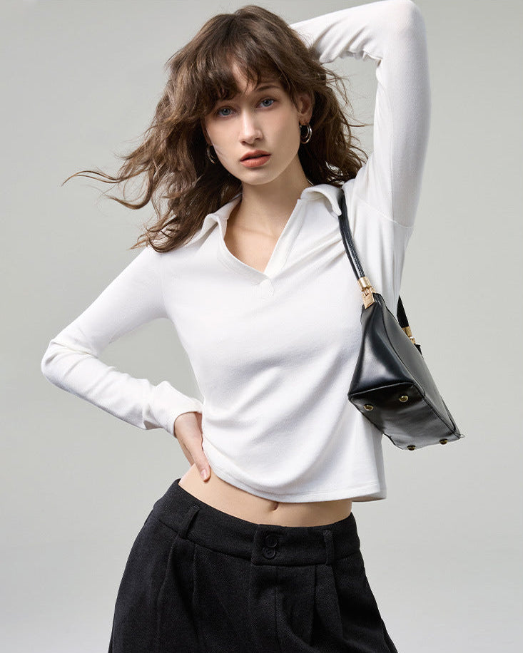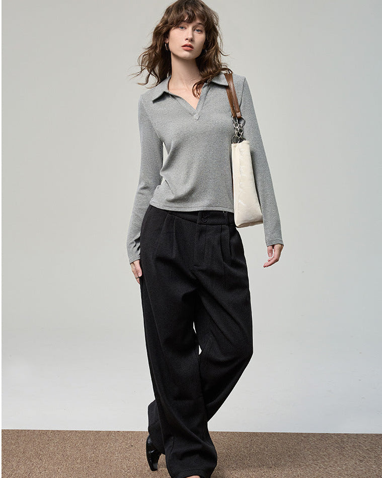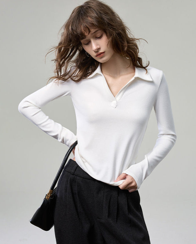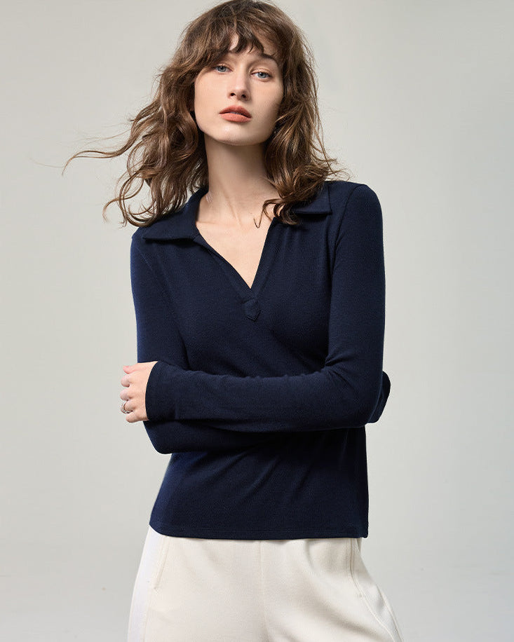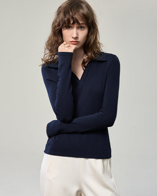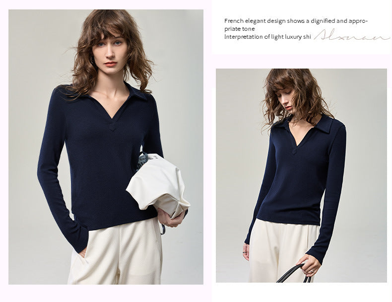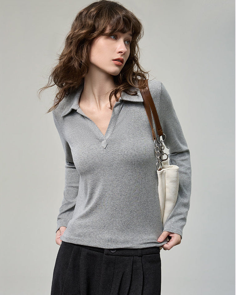 科技德絨_V型翻領薄款針織衫