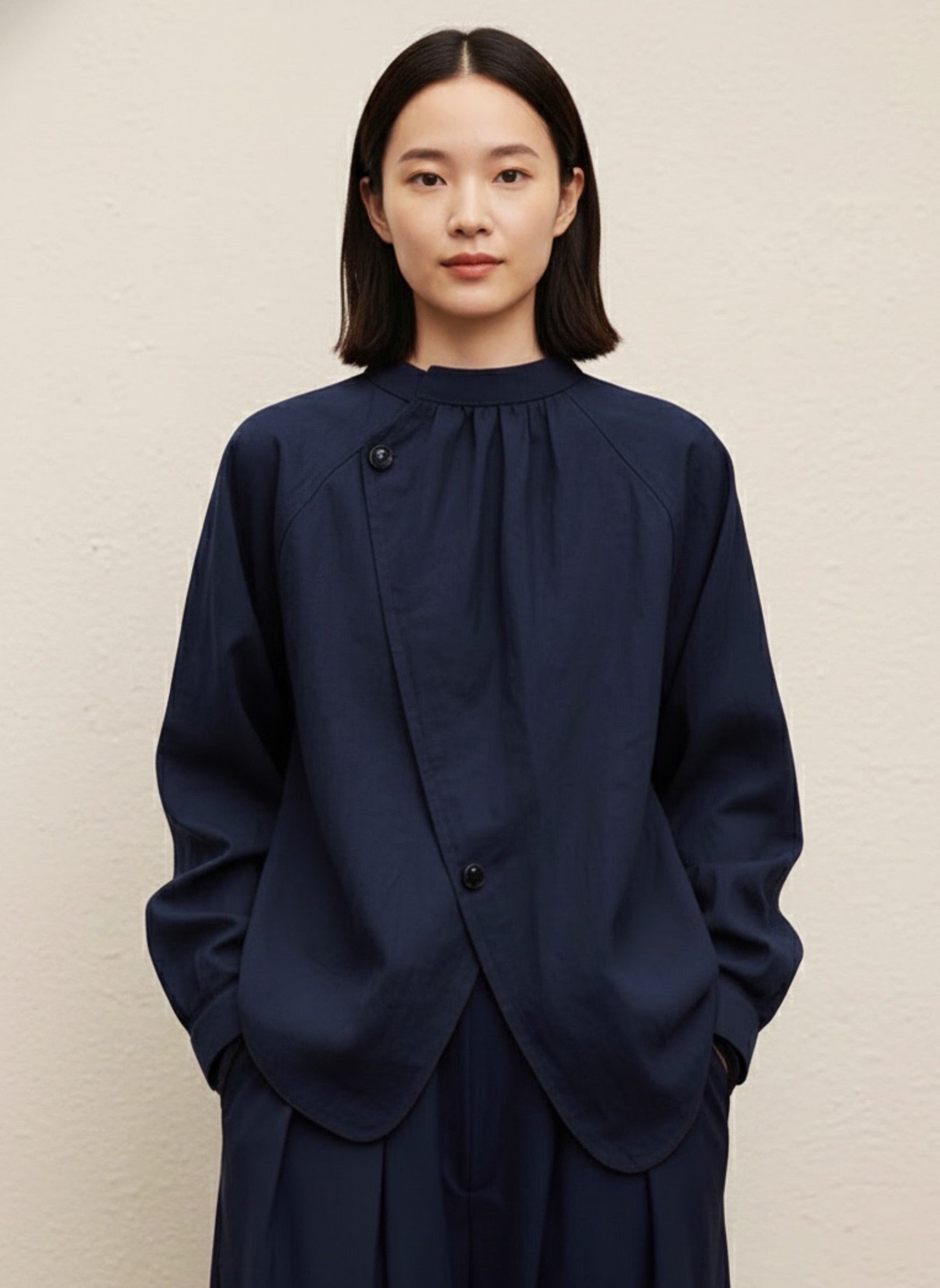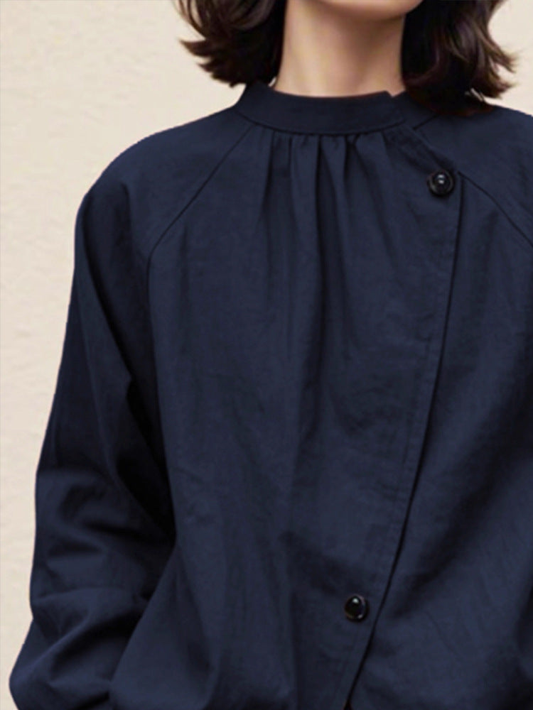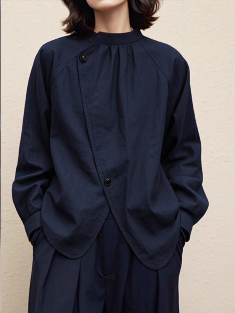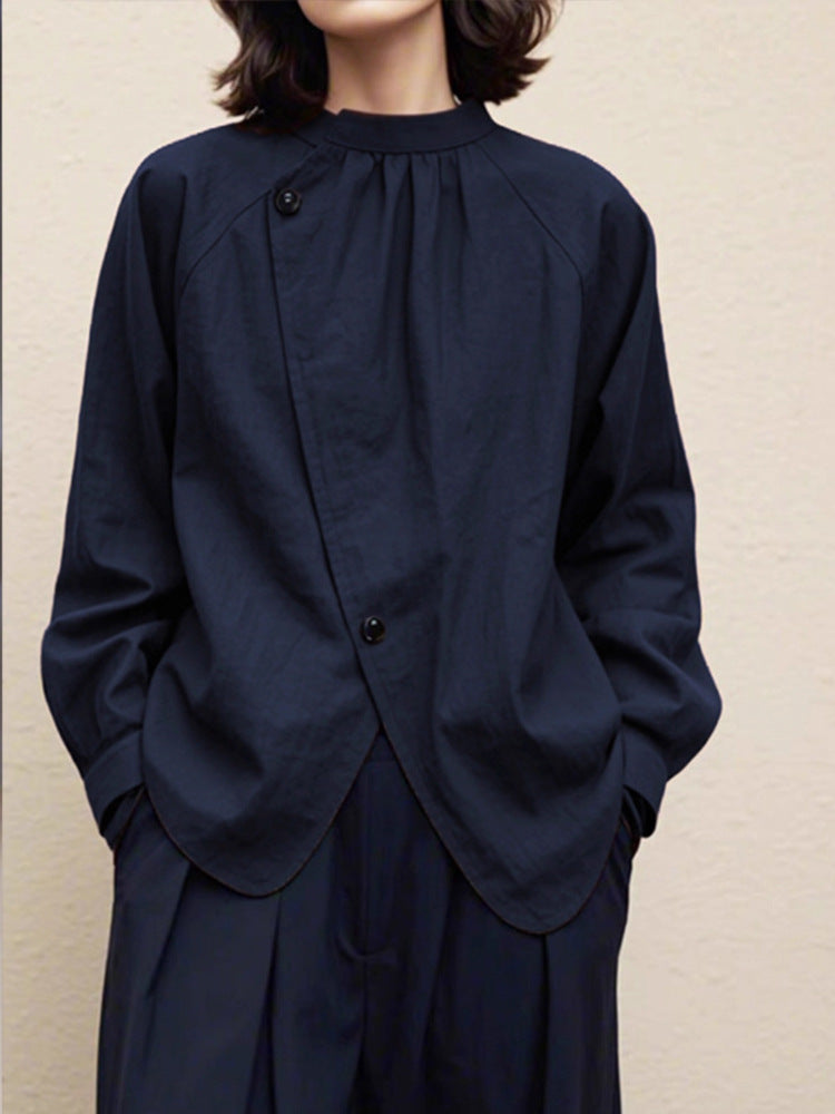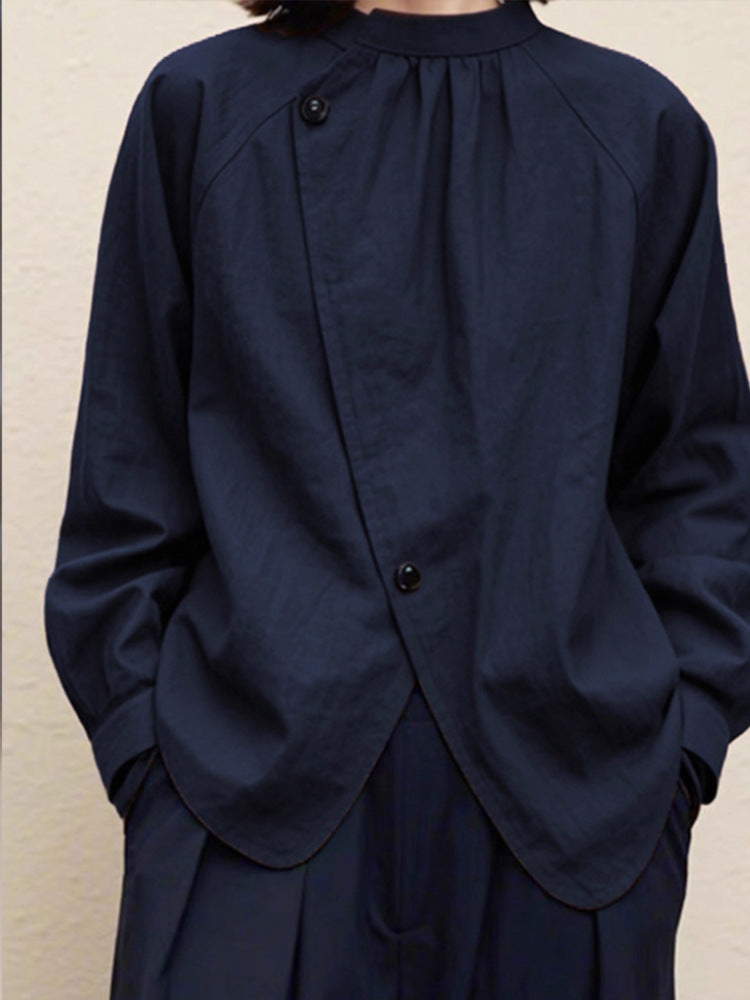 藏青色日式設計款文青襯衫
