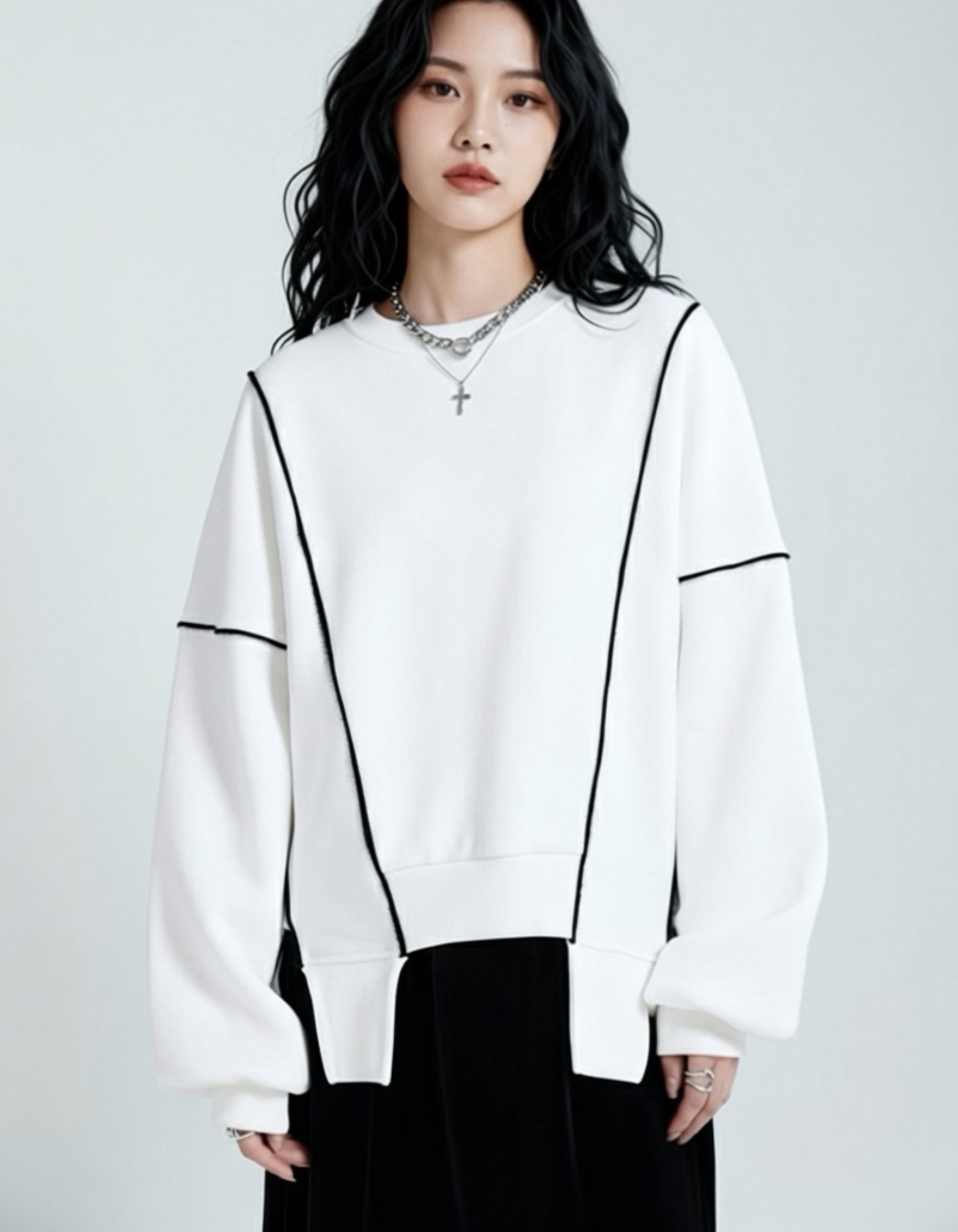 ◼️品名/ 街頭風拼接內加絨保暖衛衣