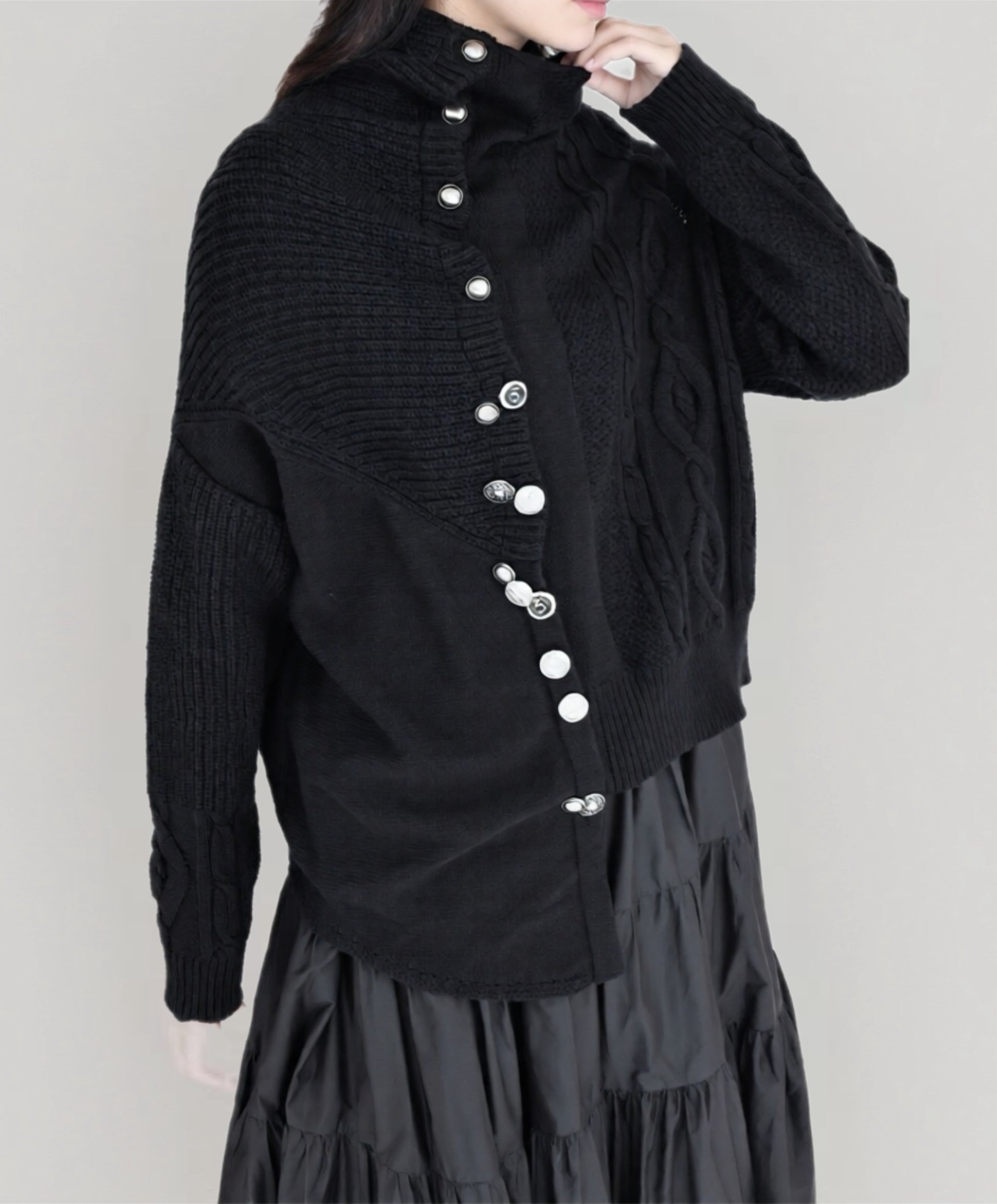 ◼️品名/ 設計師款/不規則多釦毛衣外套