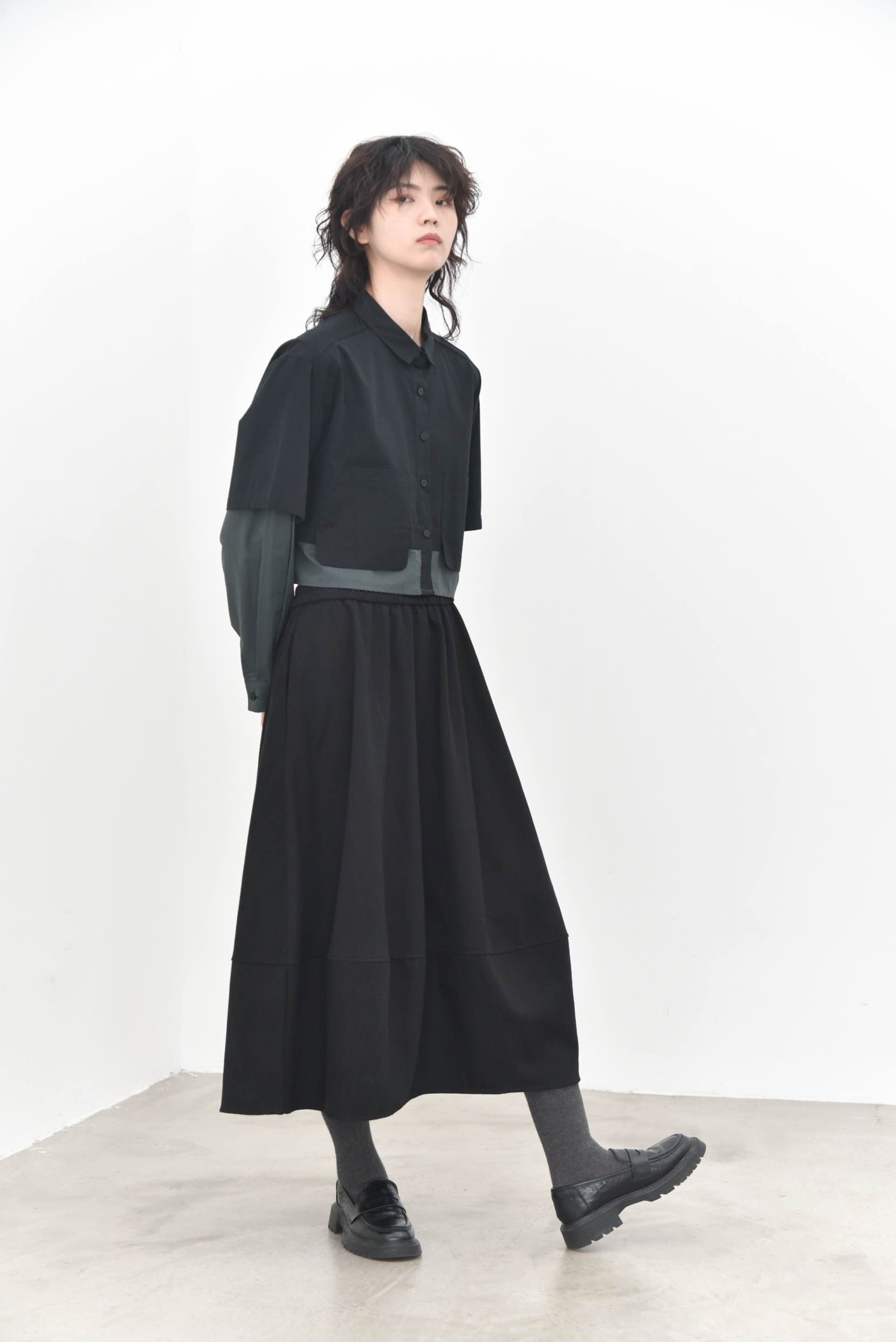 早秋熱銷!/ 撞色假兩件造型短版薄襯衫