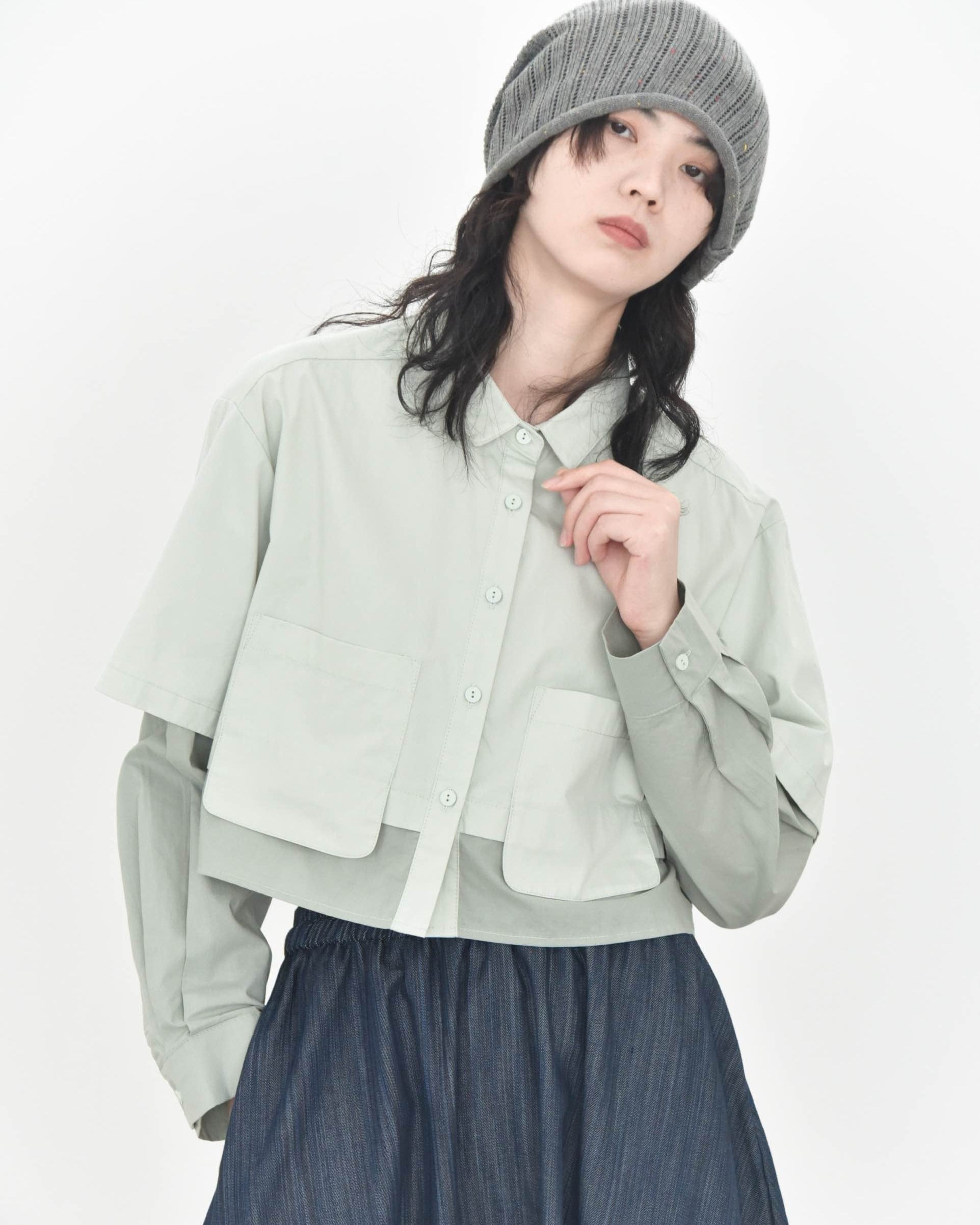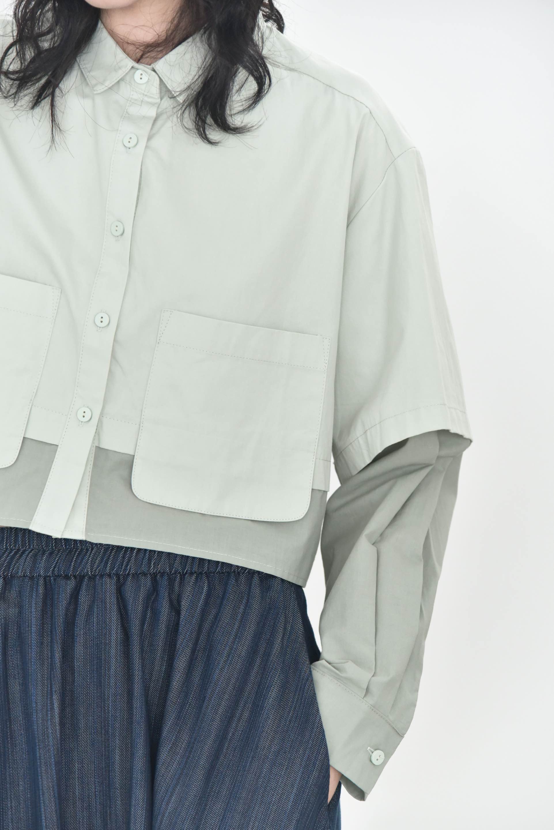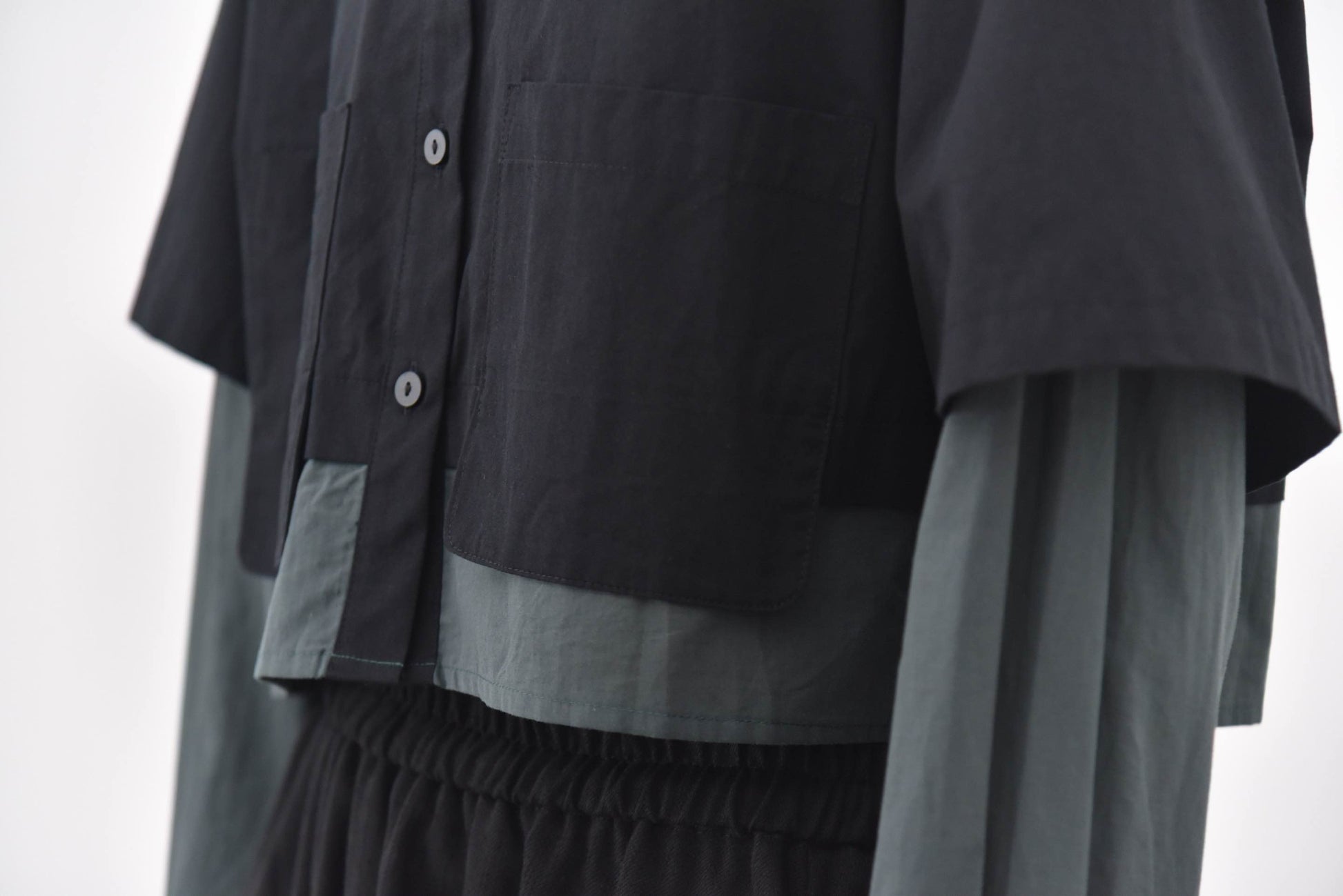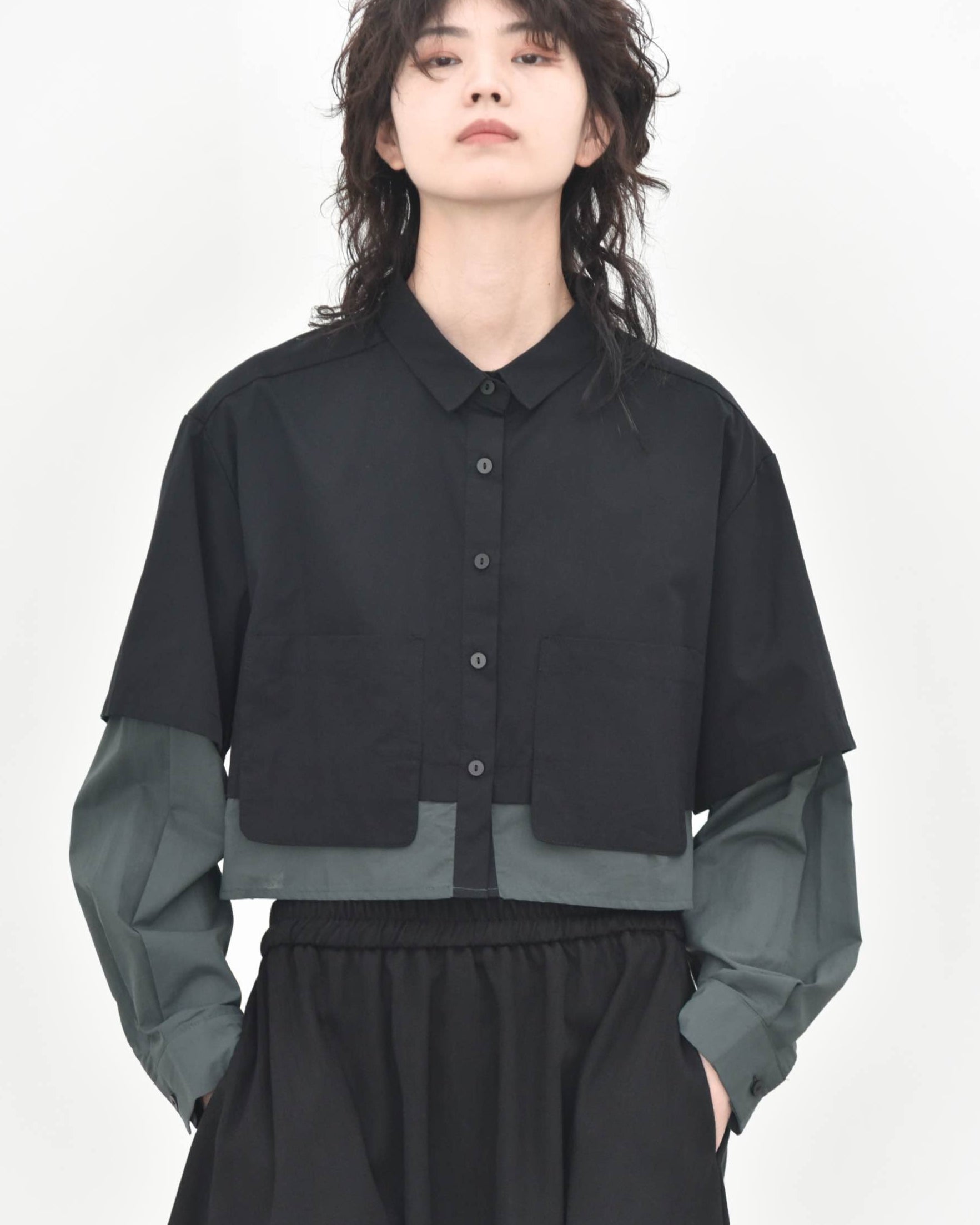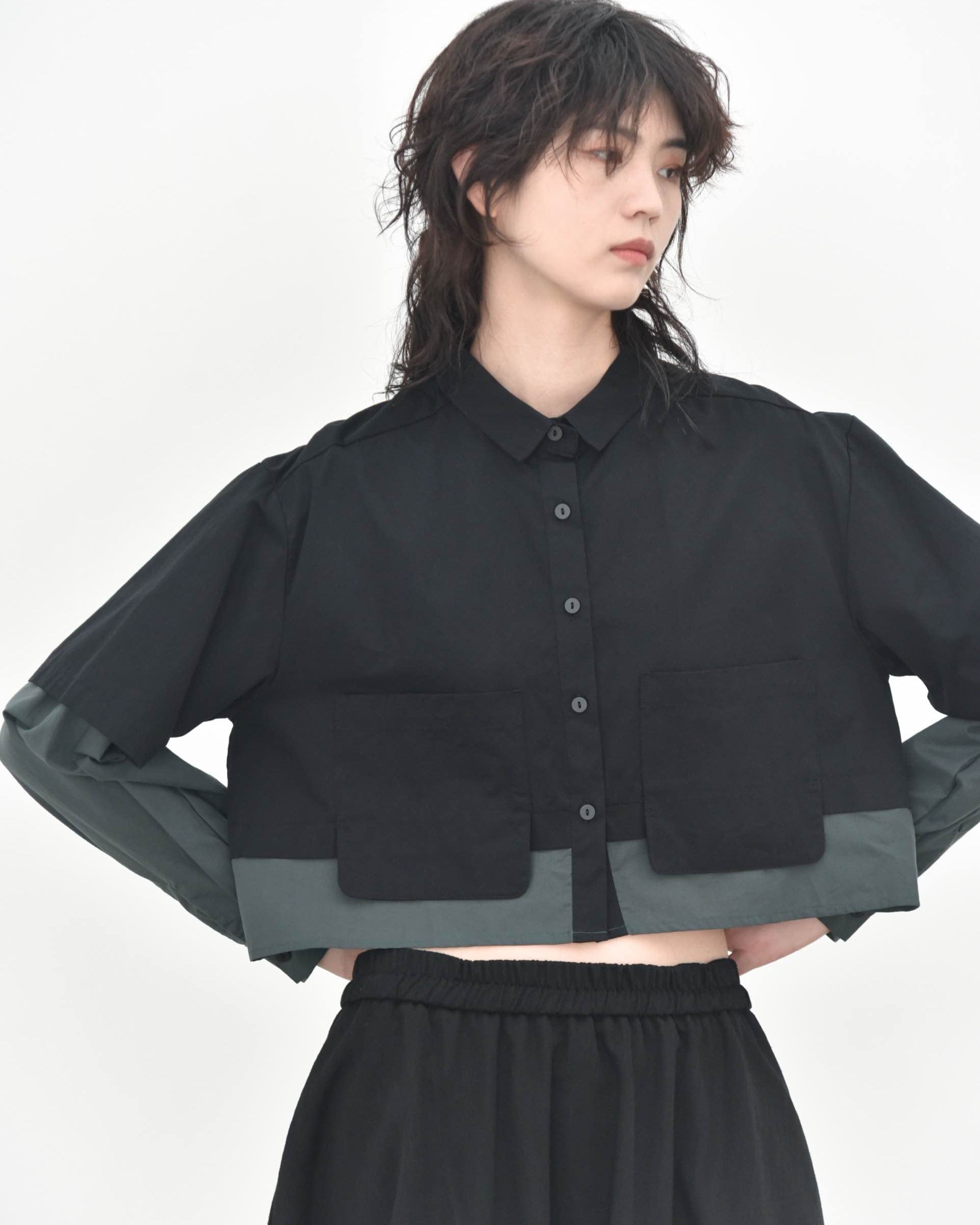 ◼️品名/ 撞色假兩件造型短版薄襯衫
