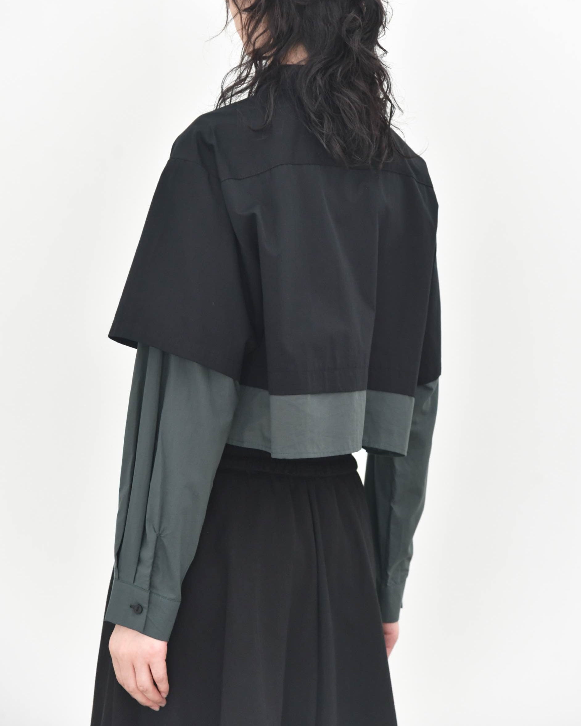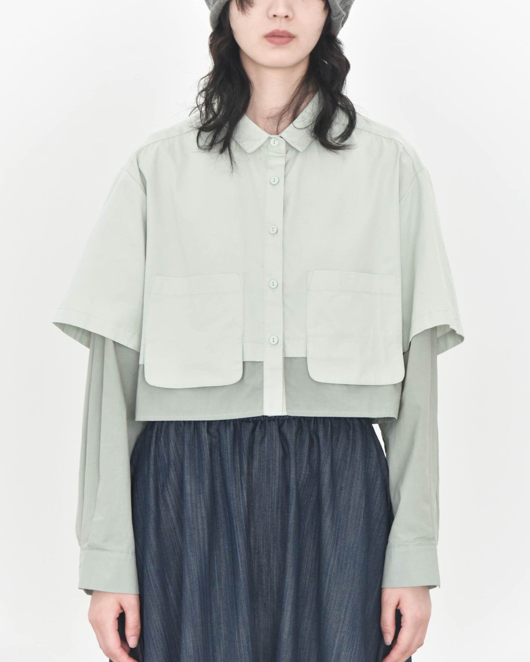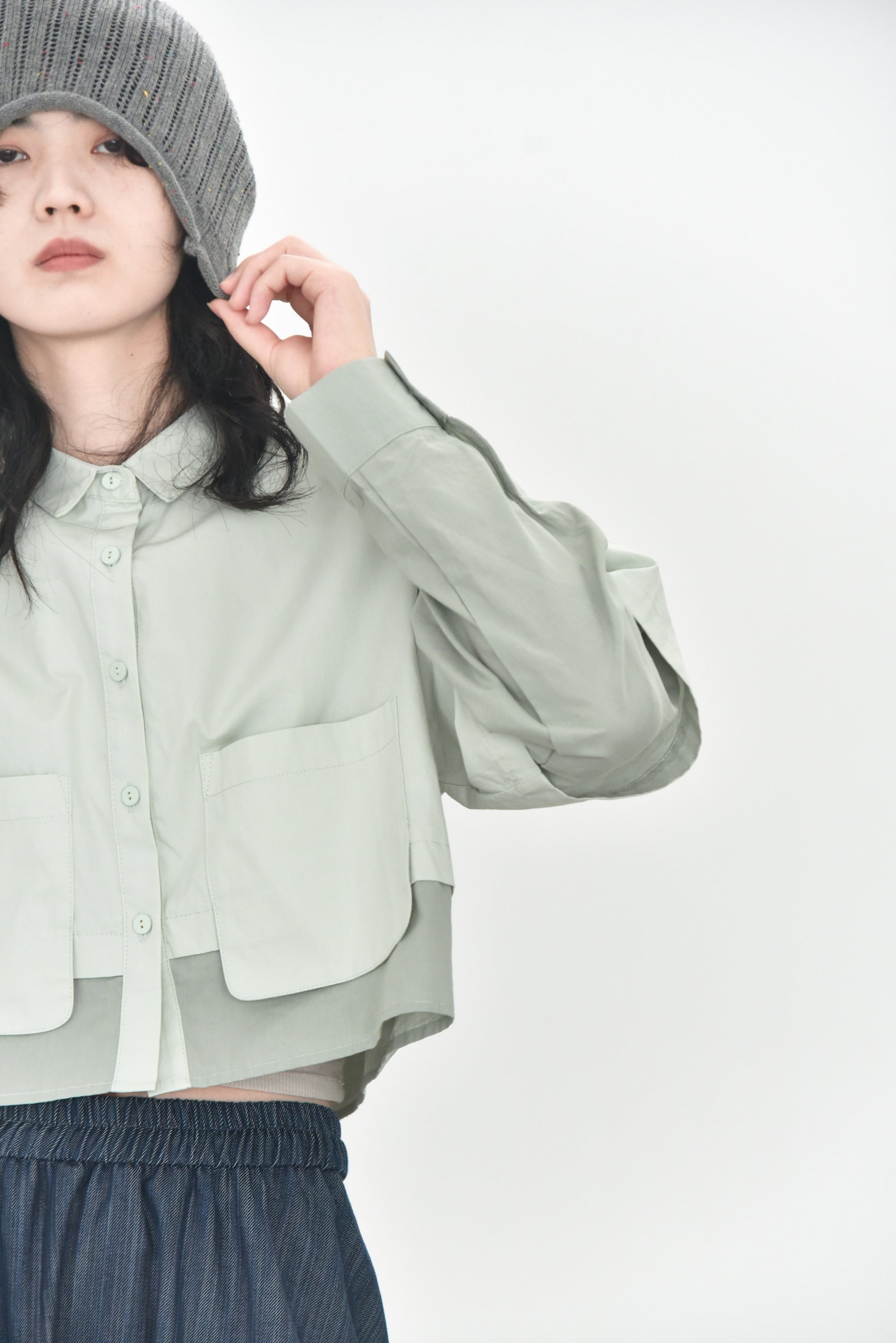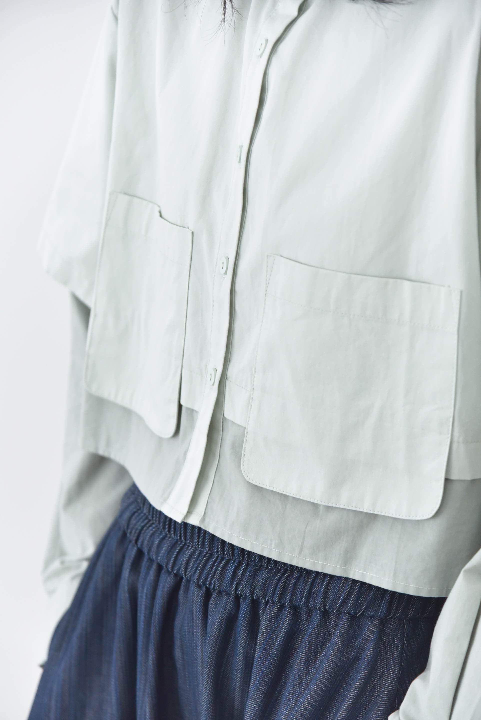 ◼️品名/ 撞色假兩件造型短版薄襯衫