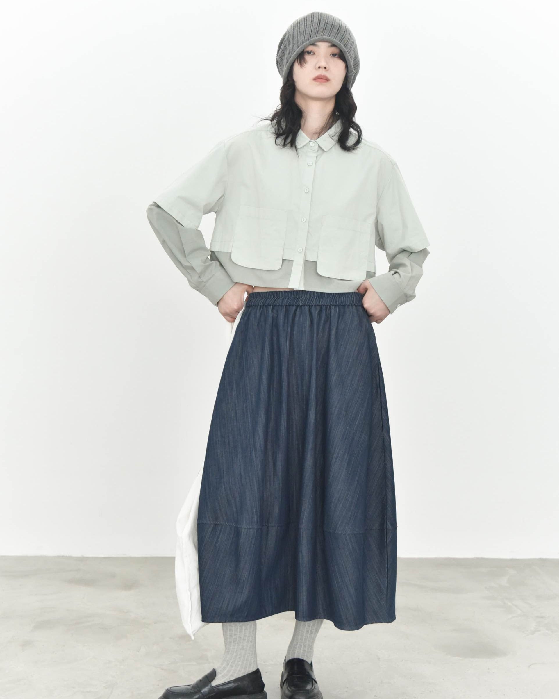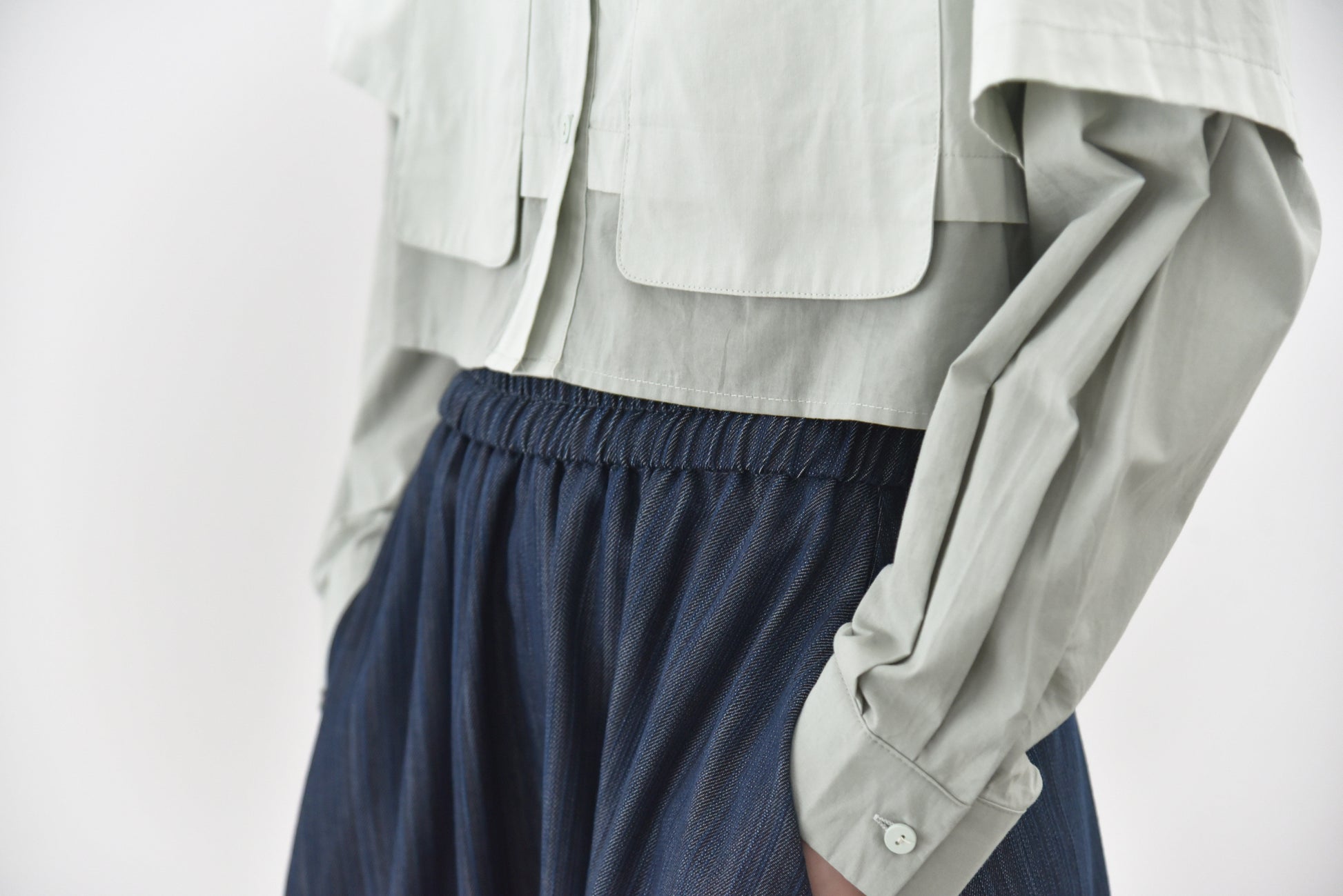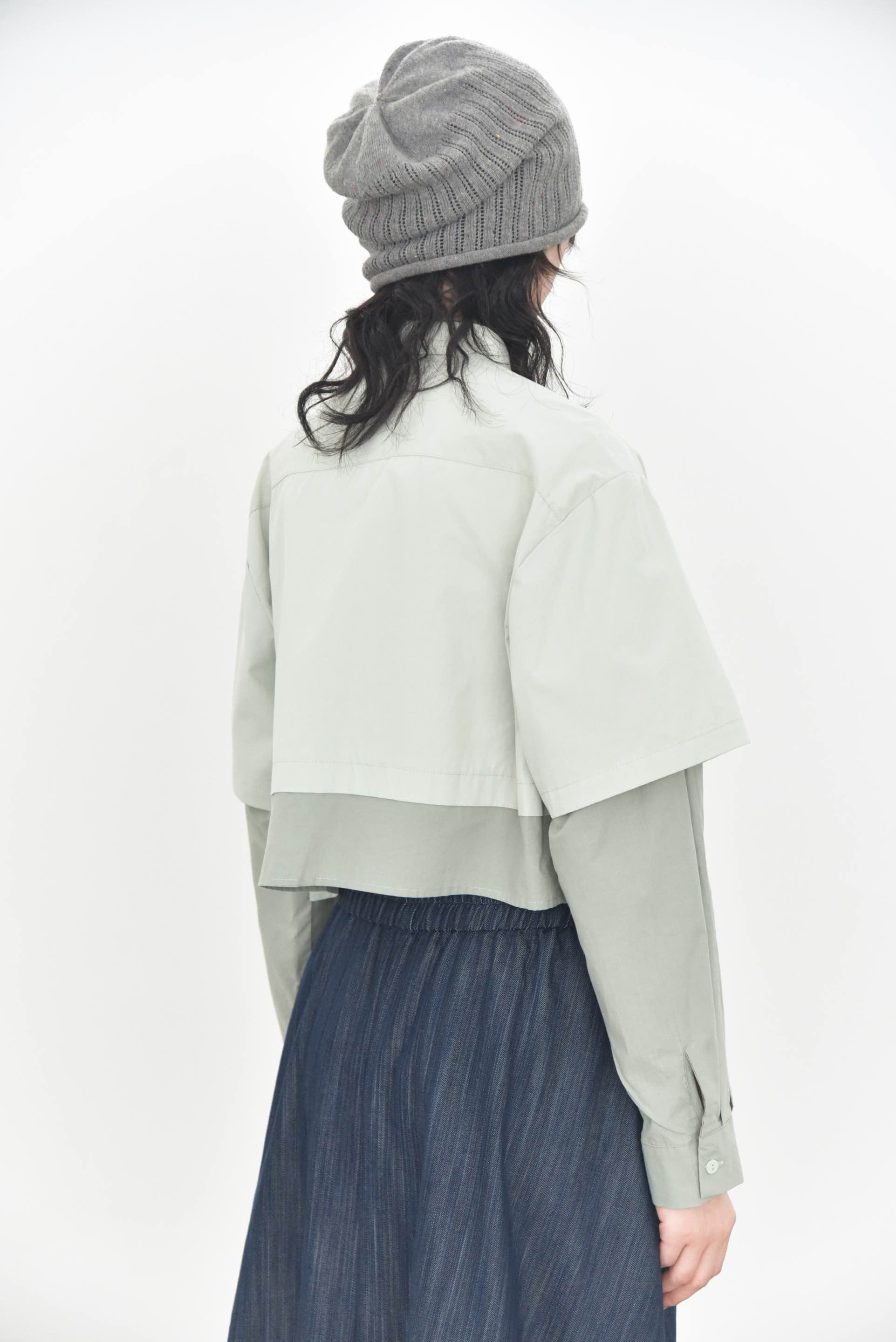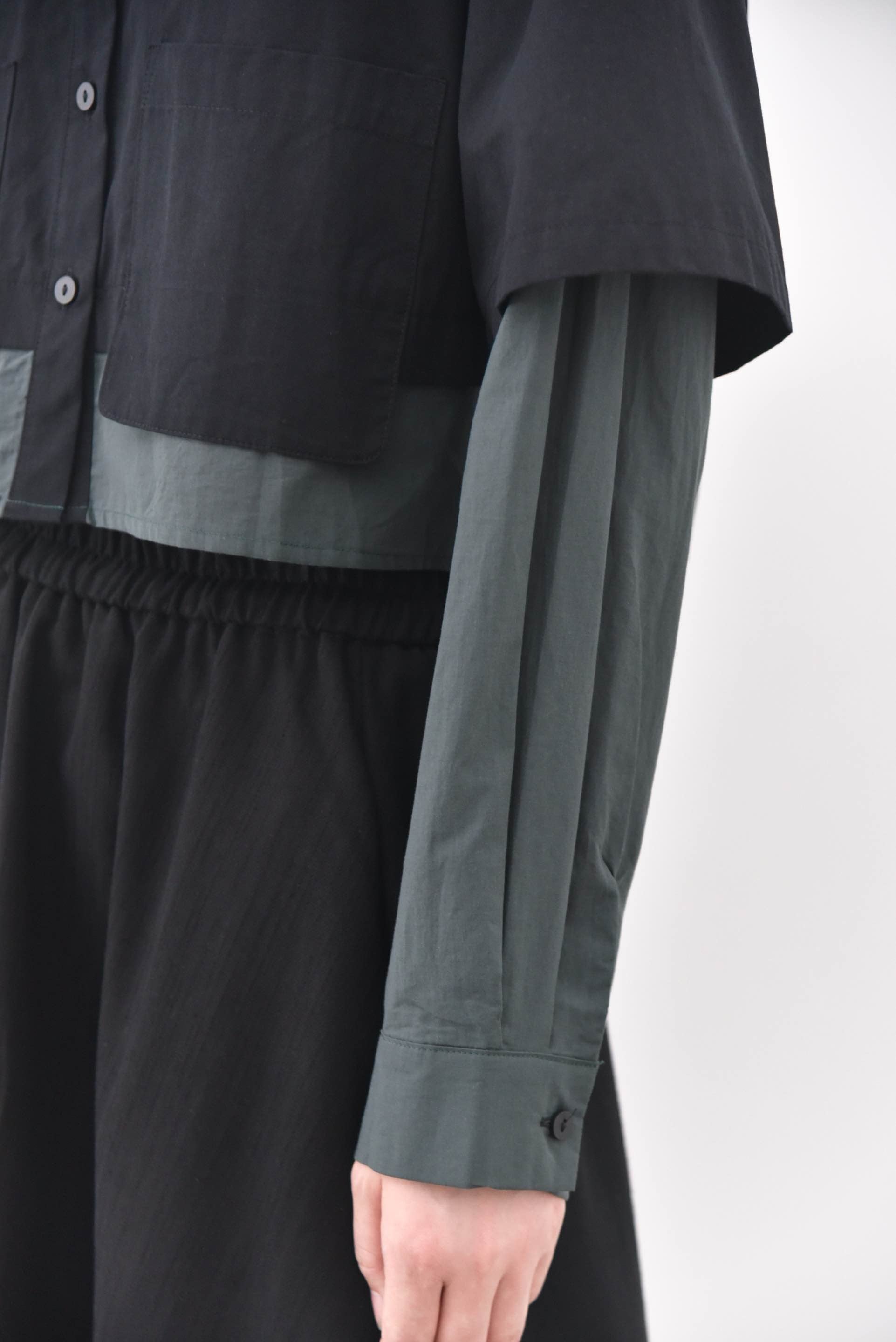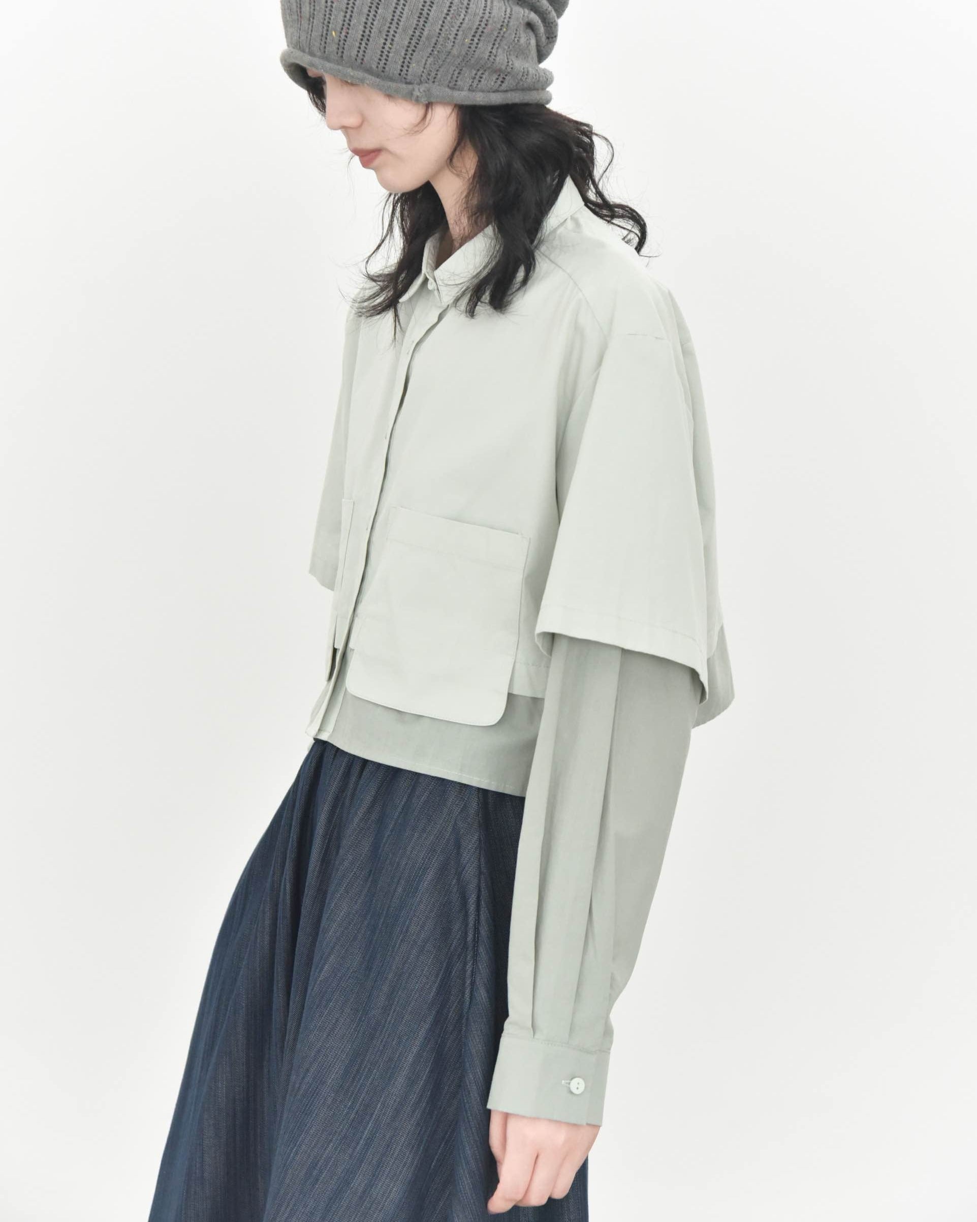 ◼️品名/ 撞色假兩件造型短版薄襯衫