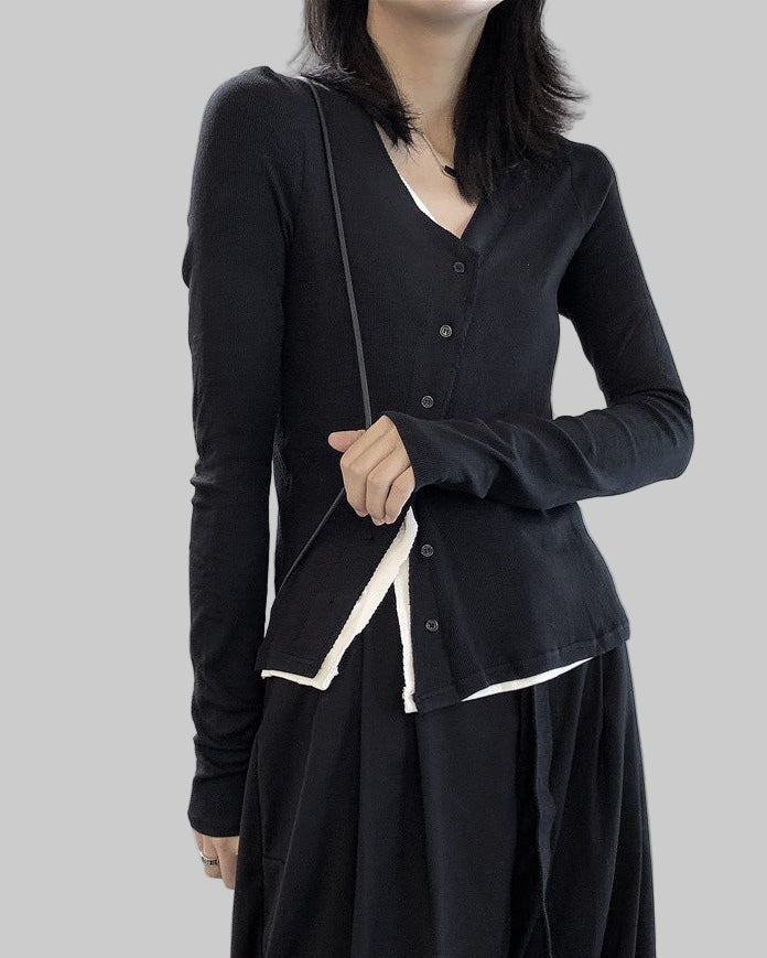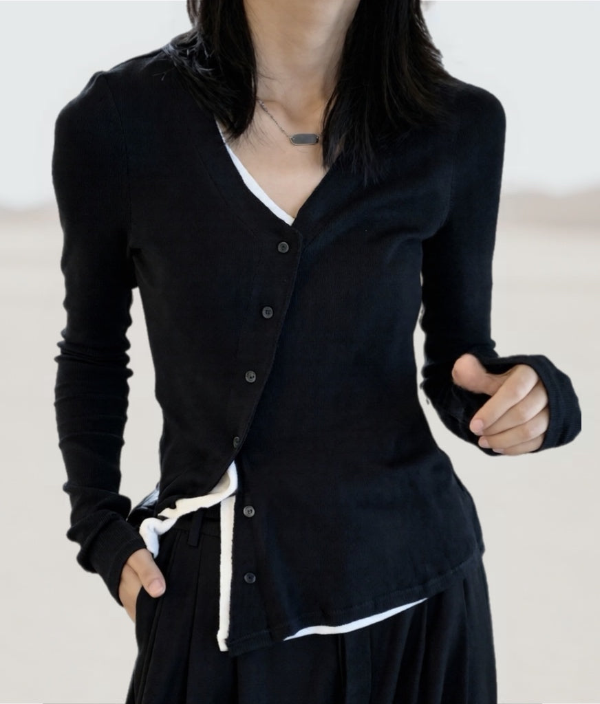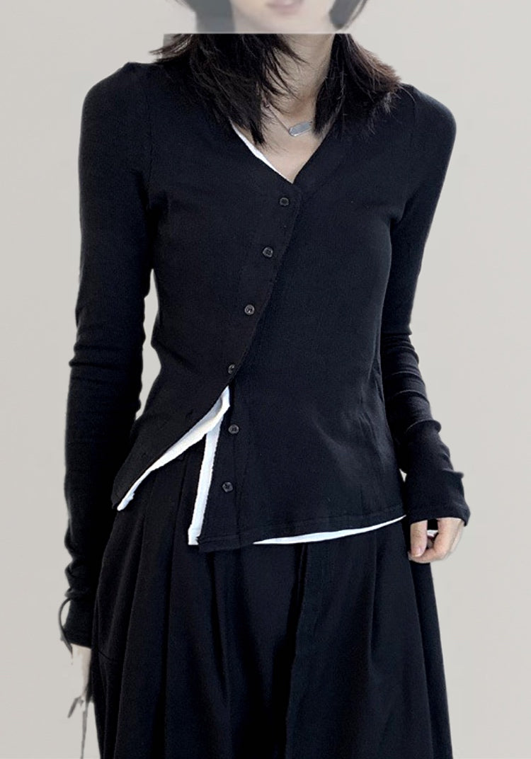◼️品名/  假兩件斜門襟設計款T恤