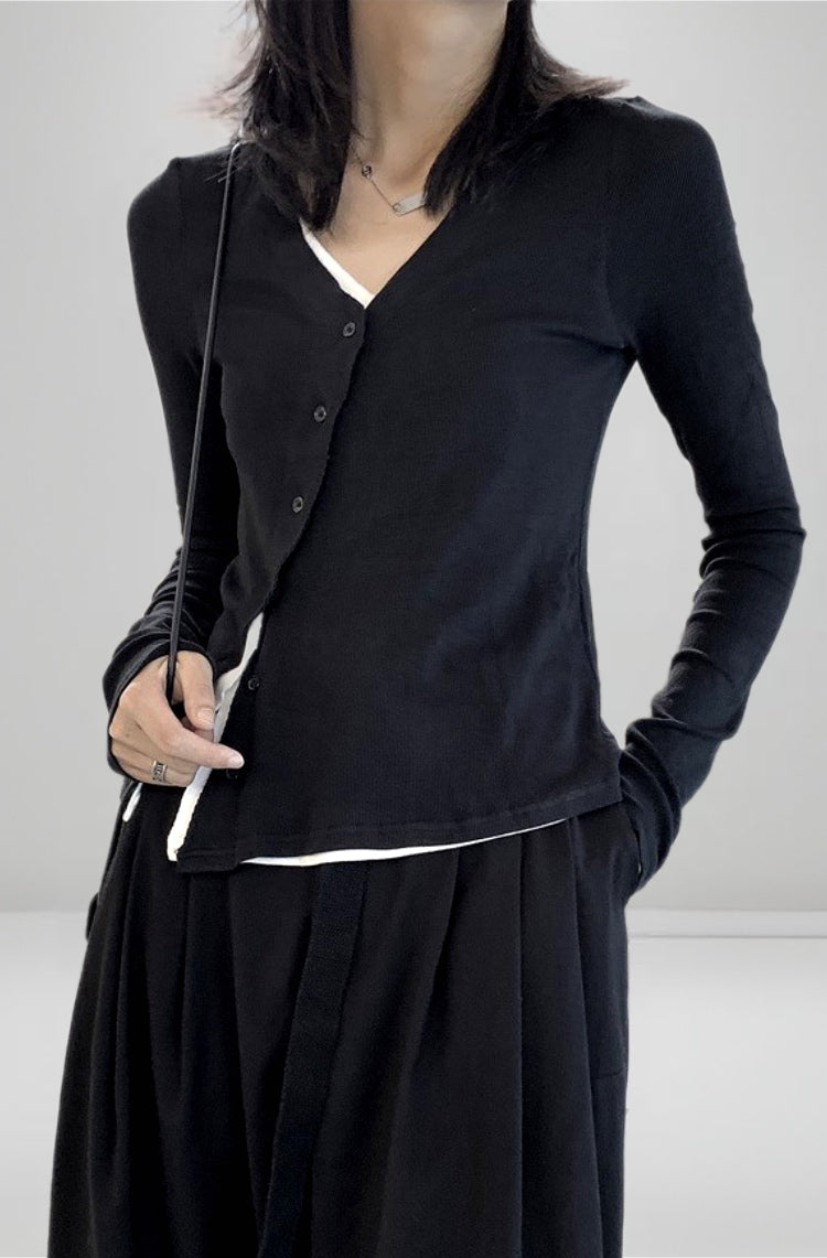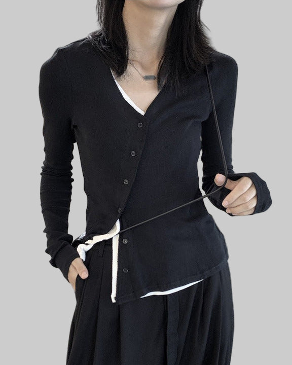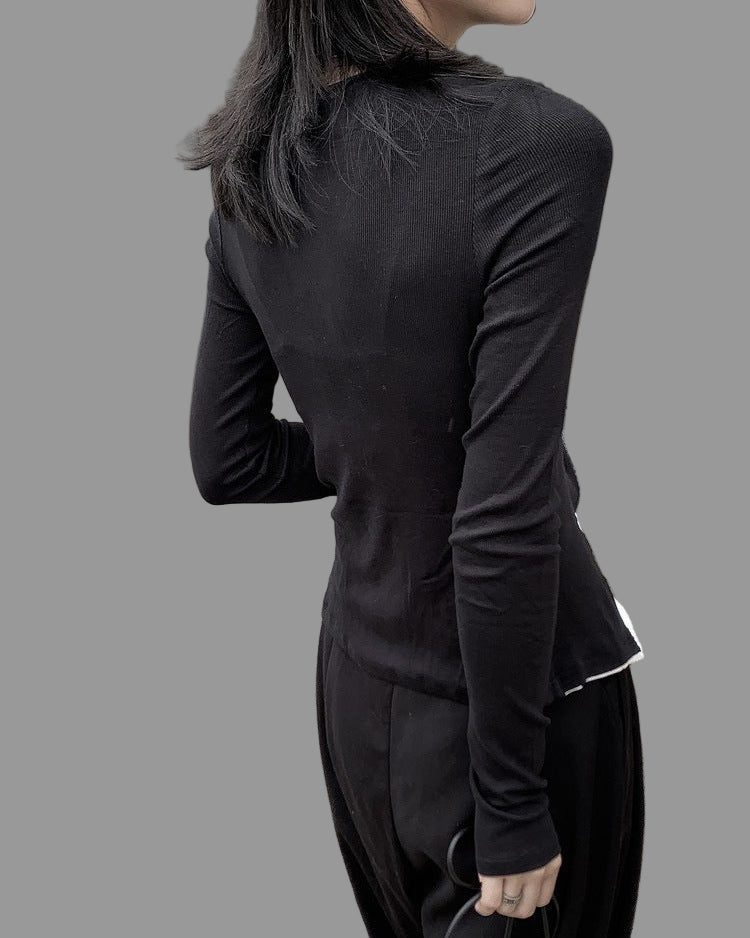 假兩件斜門襟設計款T恤