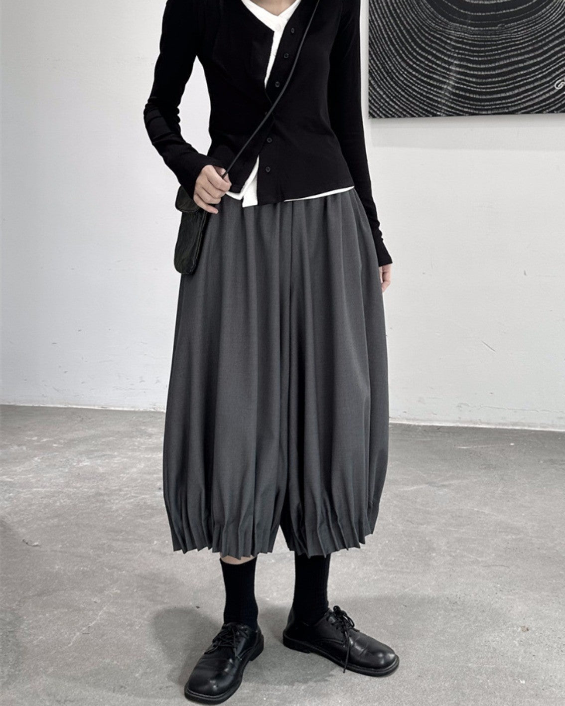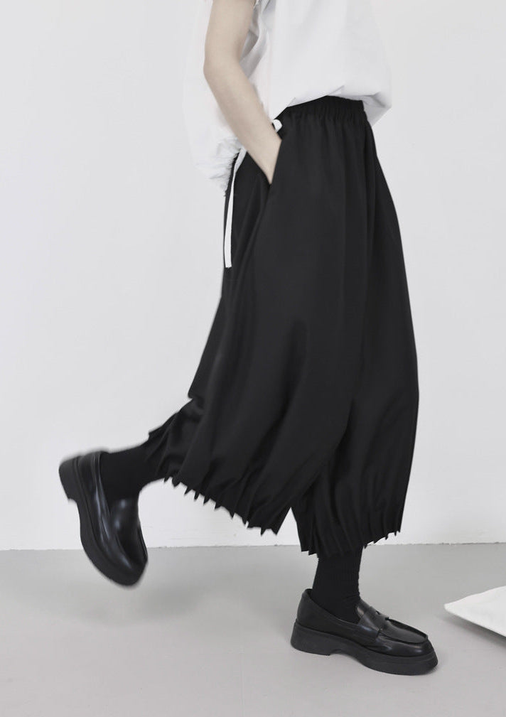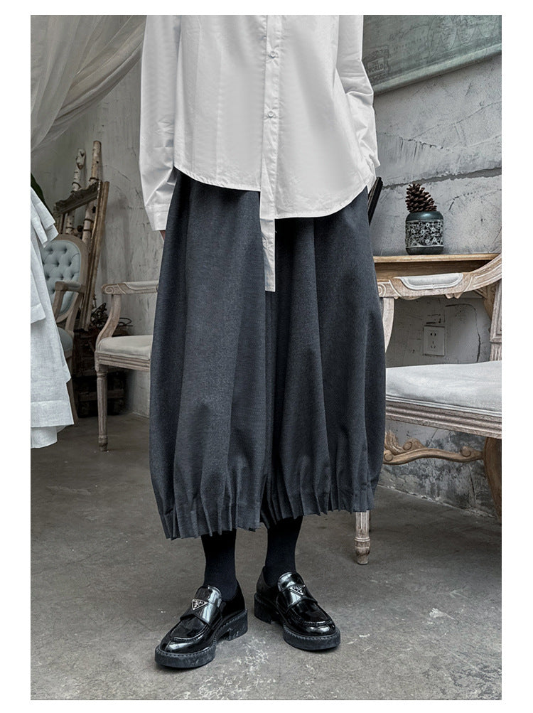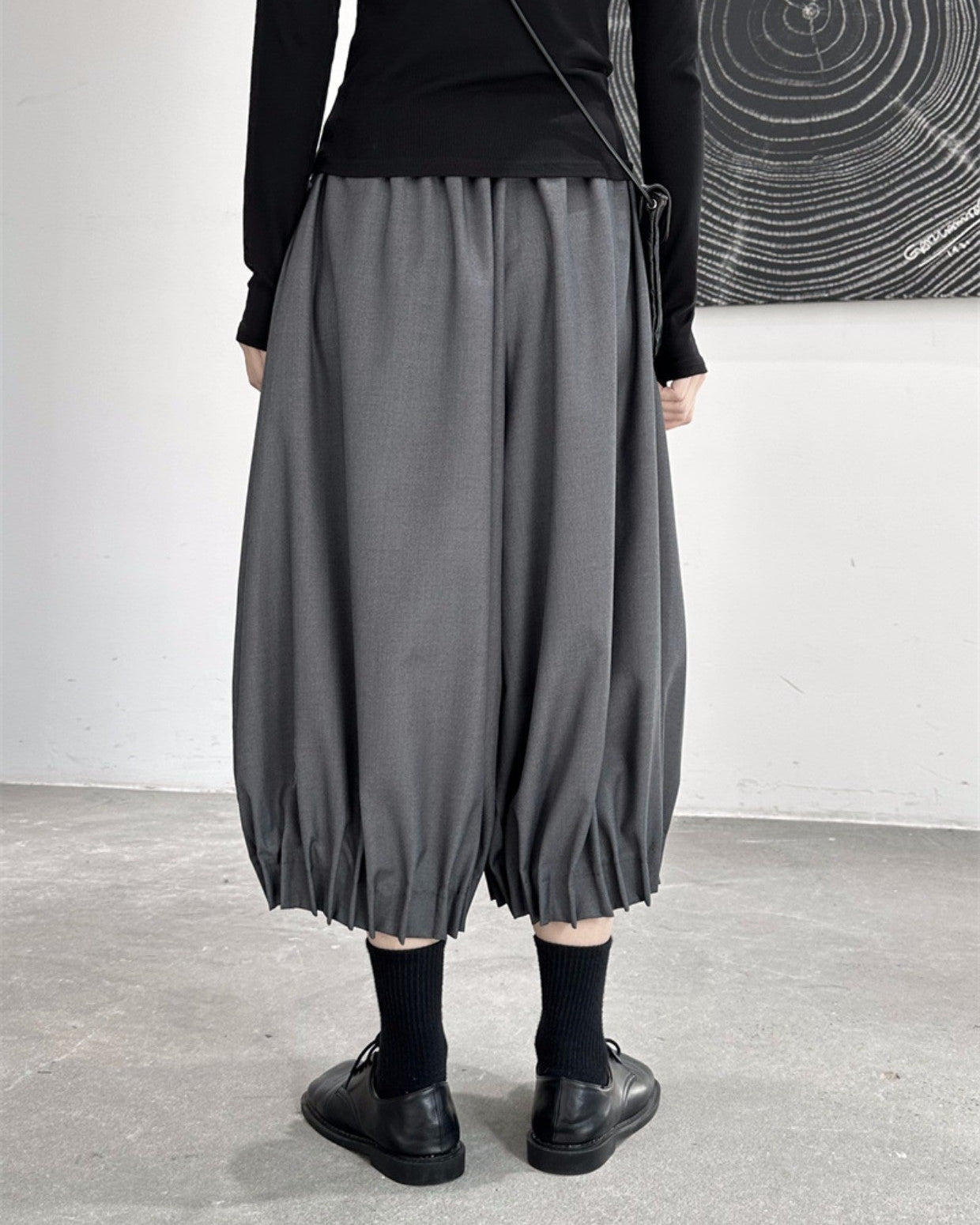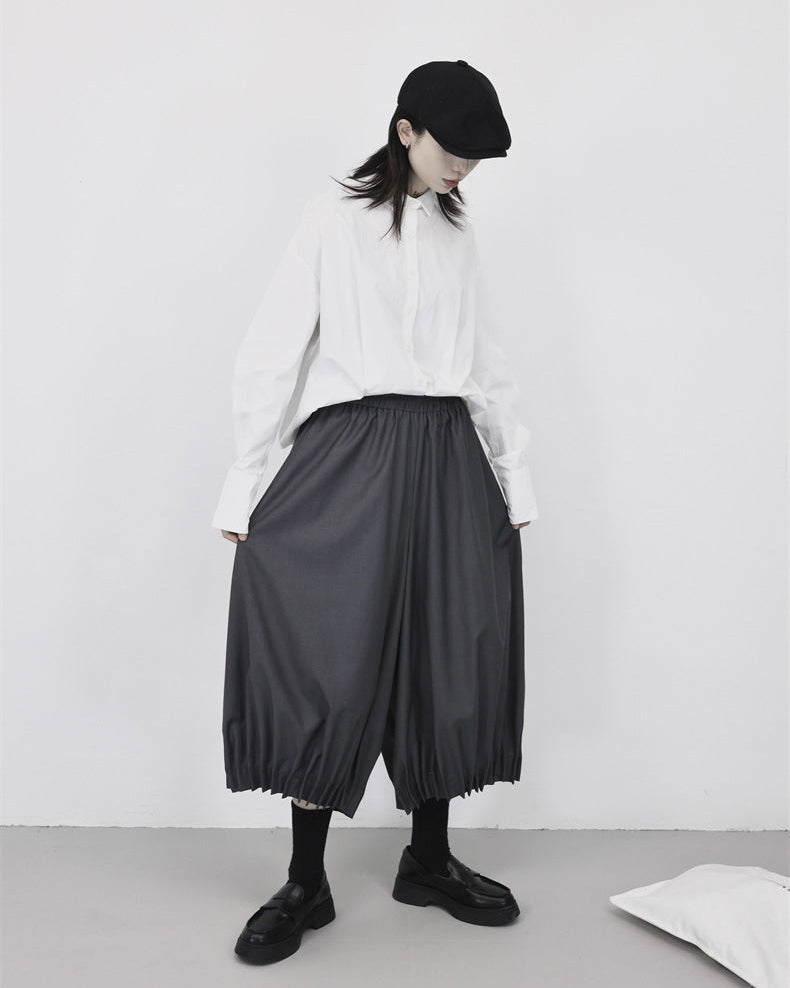 ◼️品名/ 西裝料垂感抓摺花苞裙褲