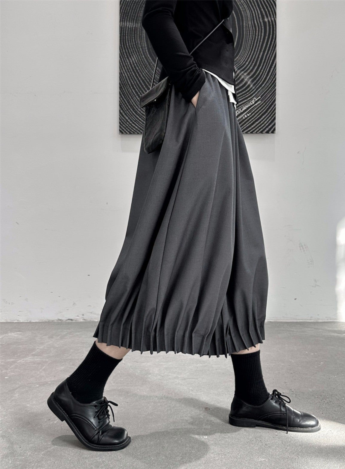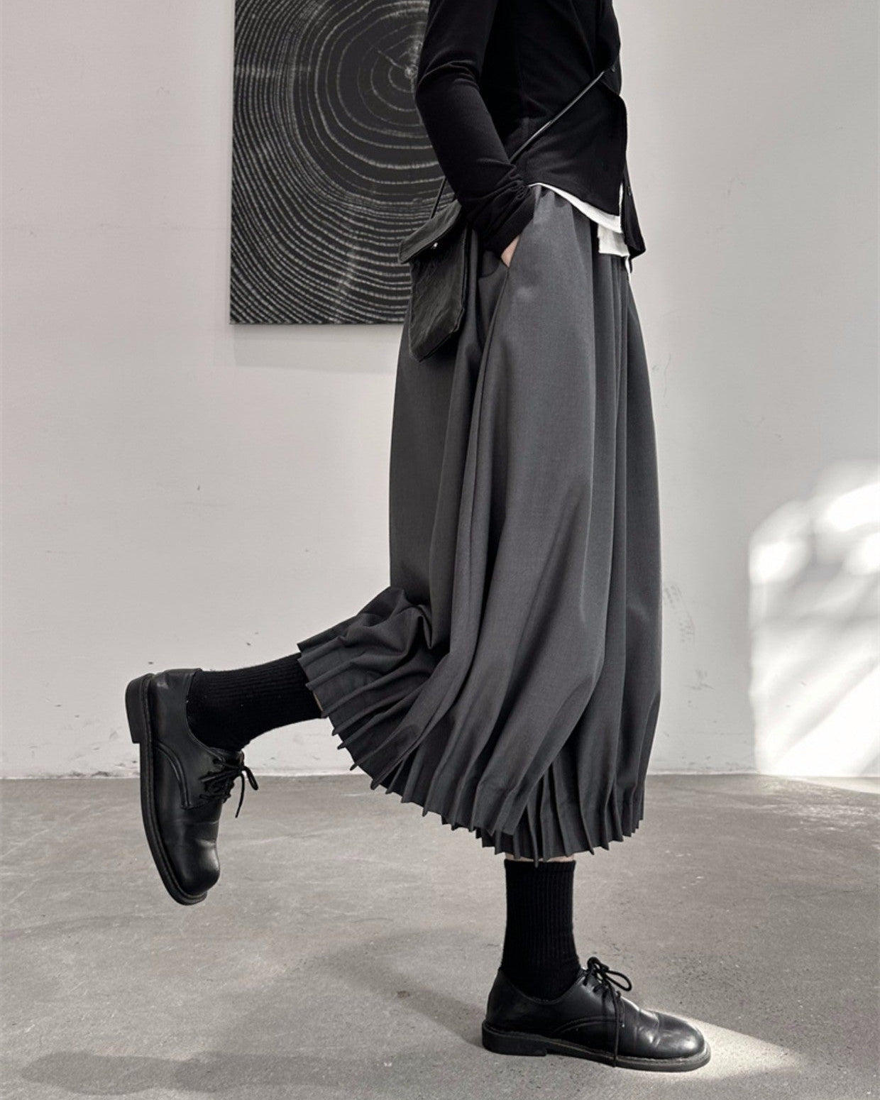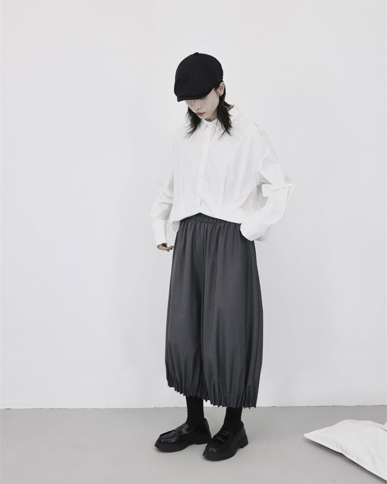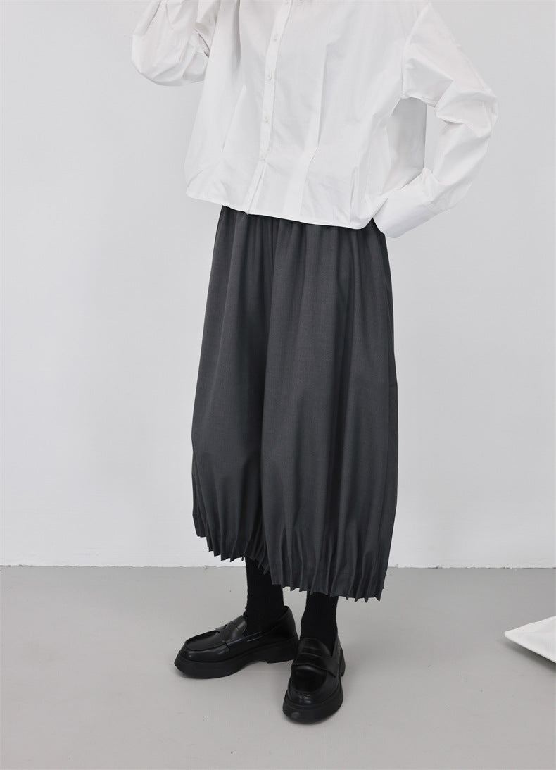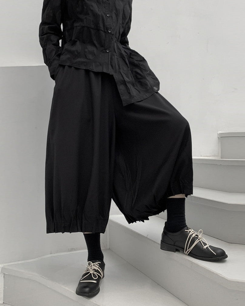 ◼️品名/ 西裝料垂感抓摺花苞裙褲