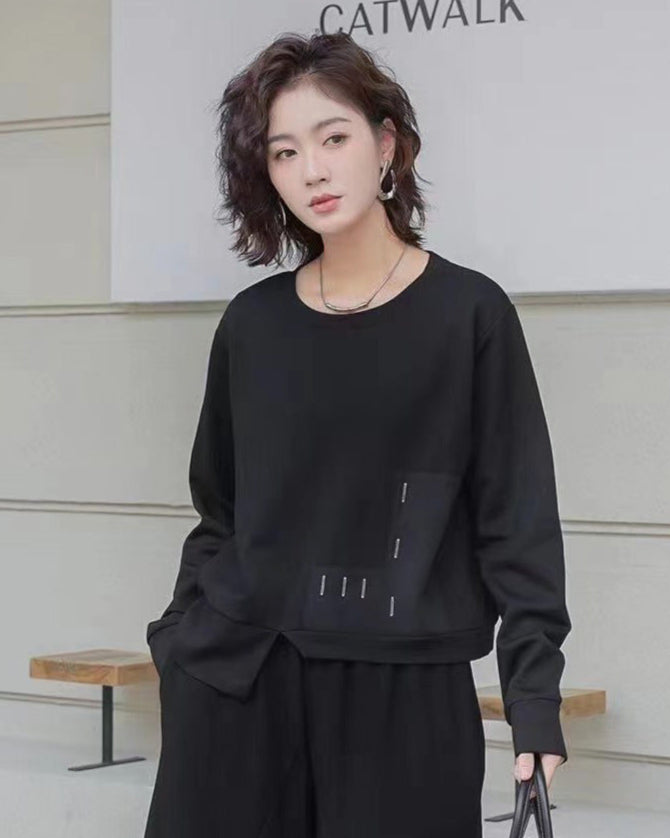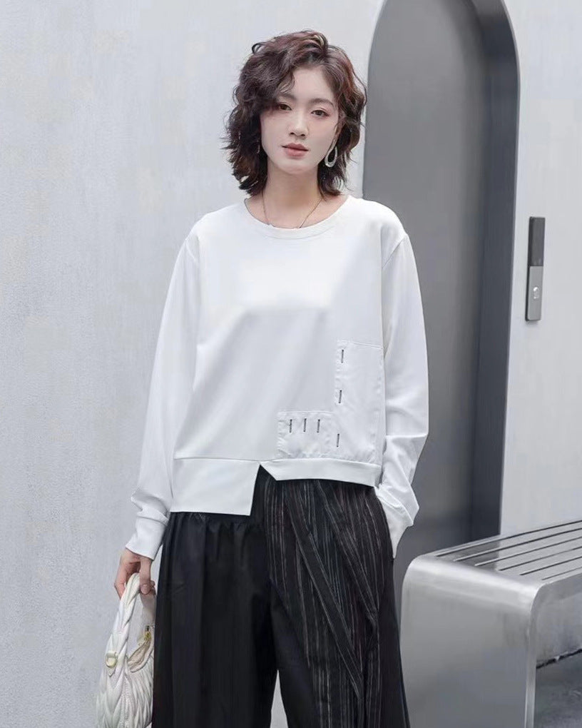 2025秋季新款/ 拼貼ins風顯瘦薄長袖上衣
