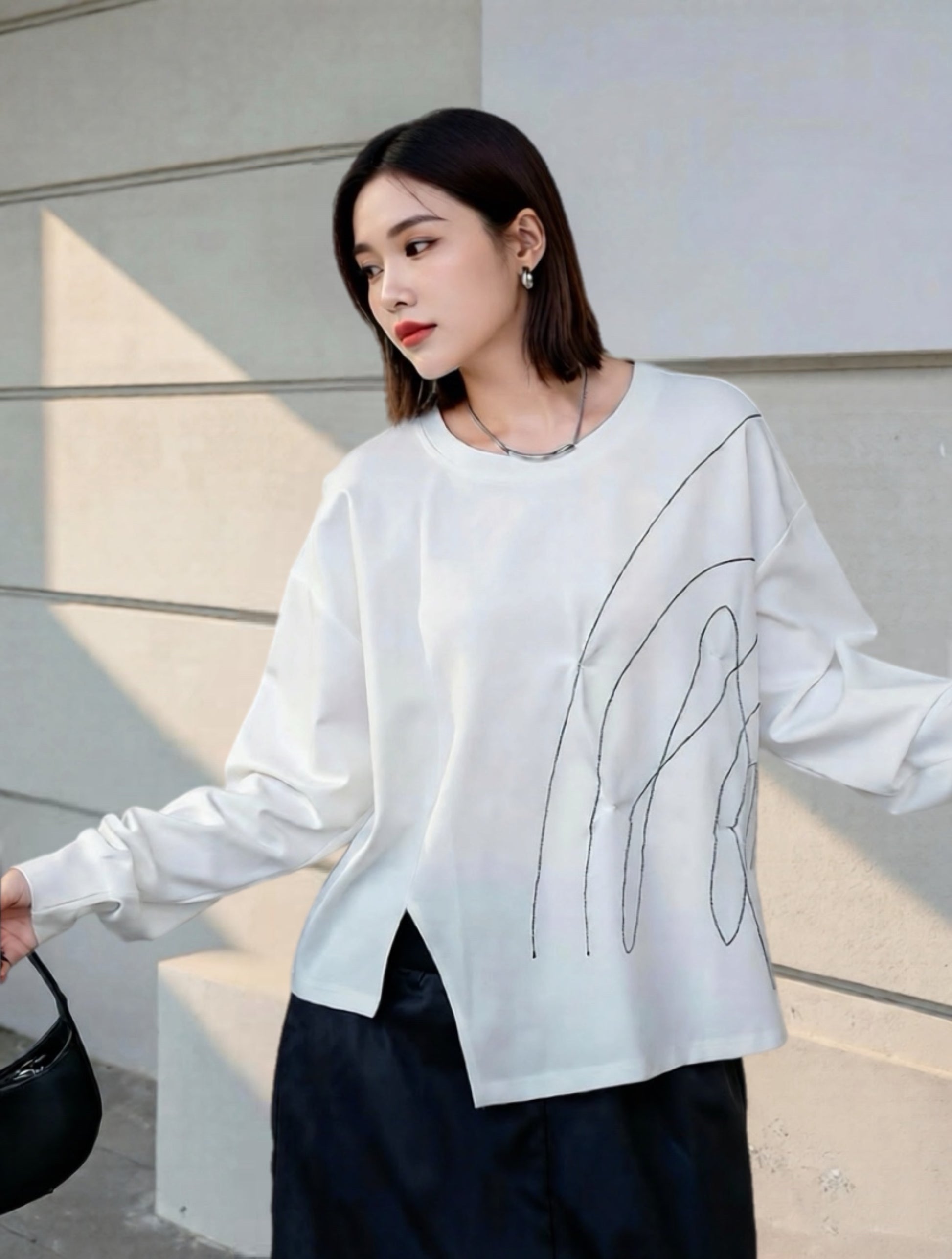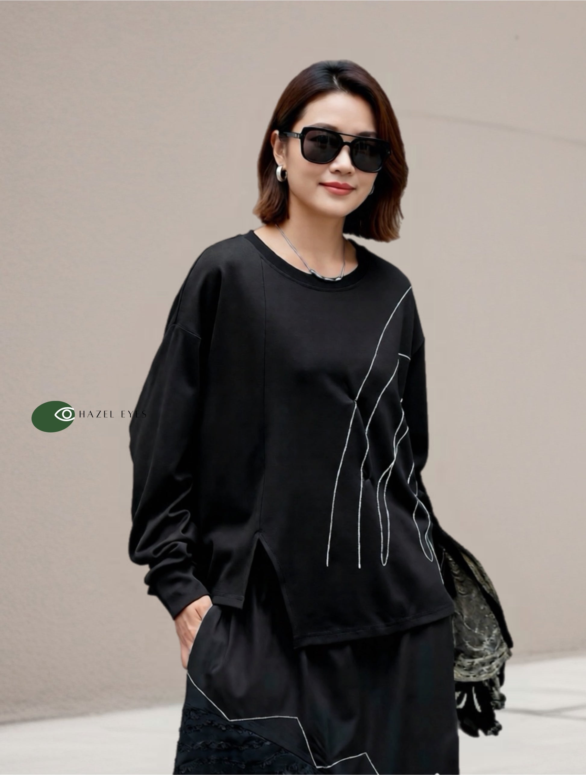 ◼️品名/ 褶皺不規則車線寬鬆薄T恤