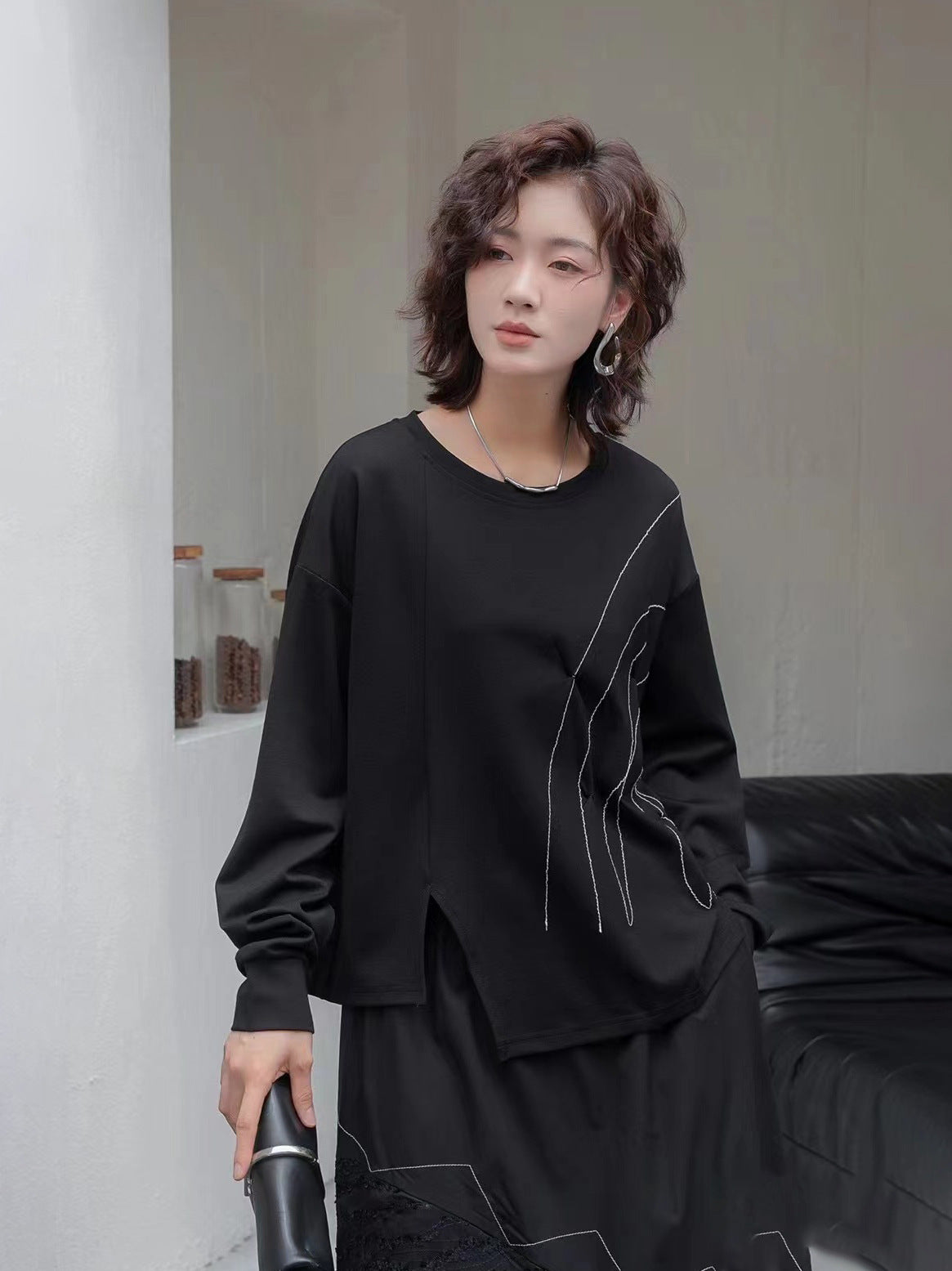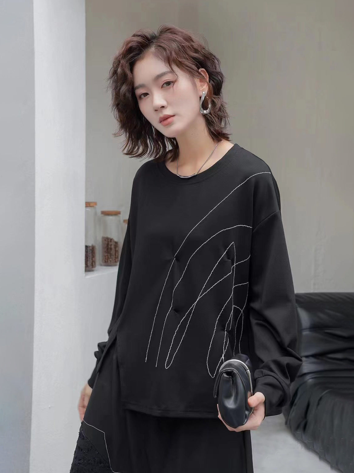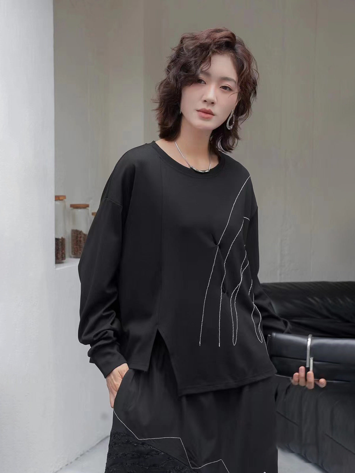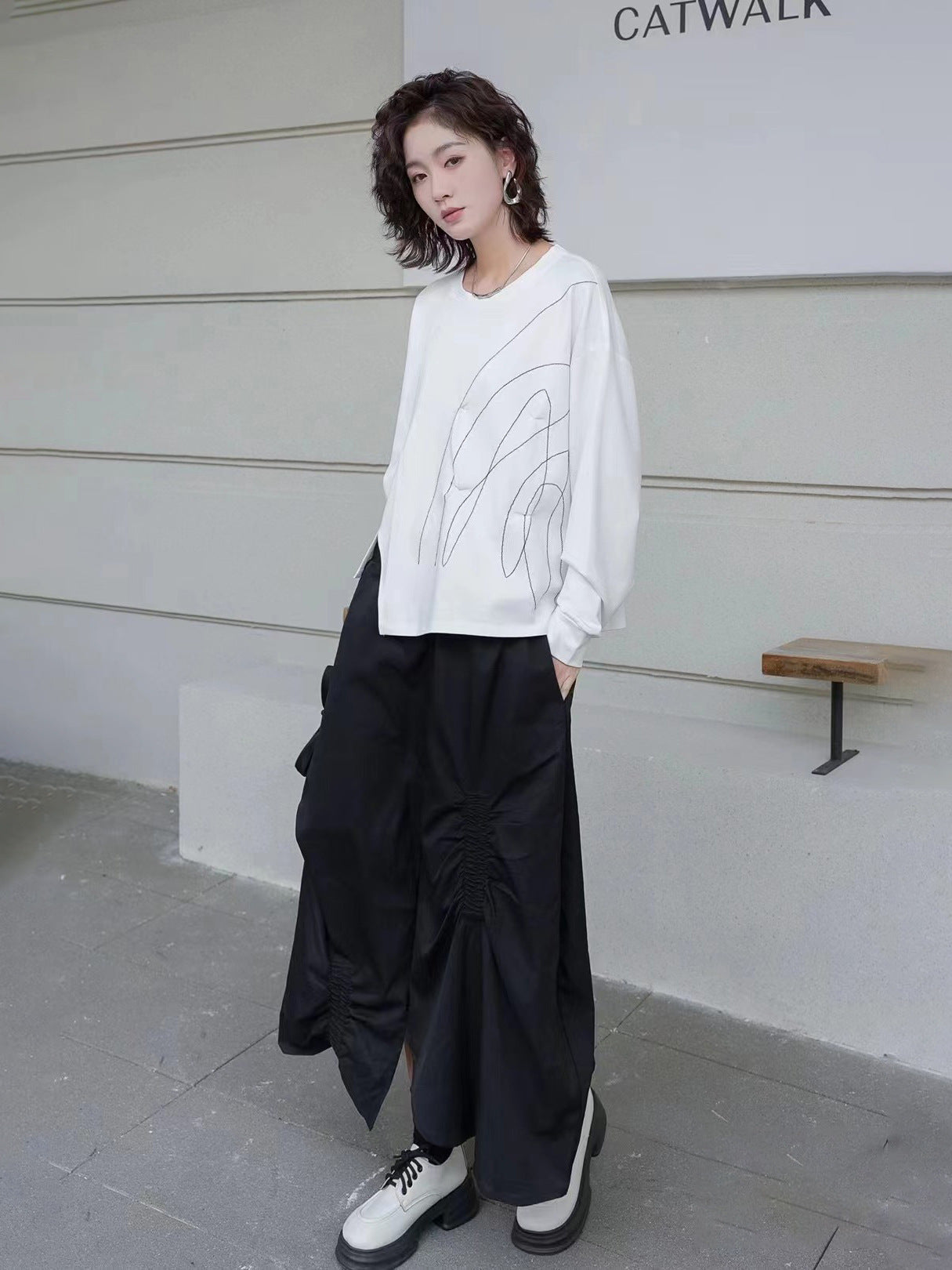 2025秋季新款/ 褶皺不規則車線寬鬆薄T恤