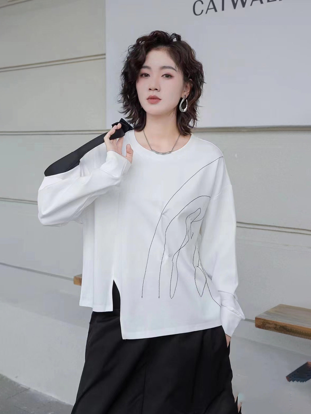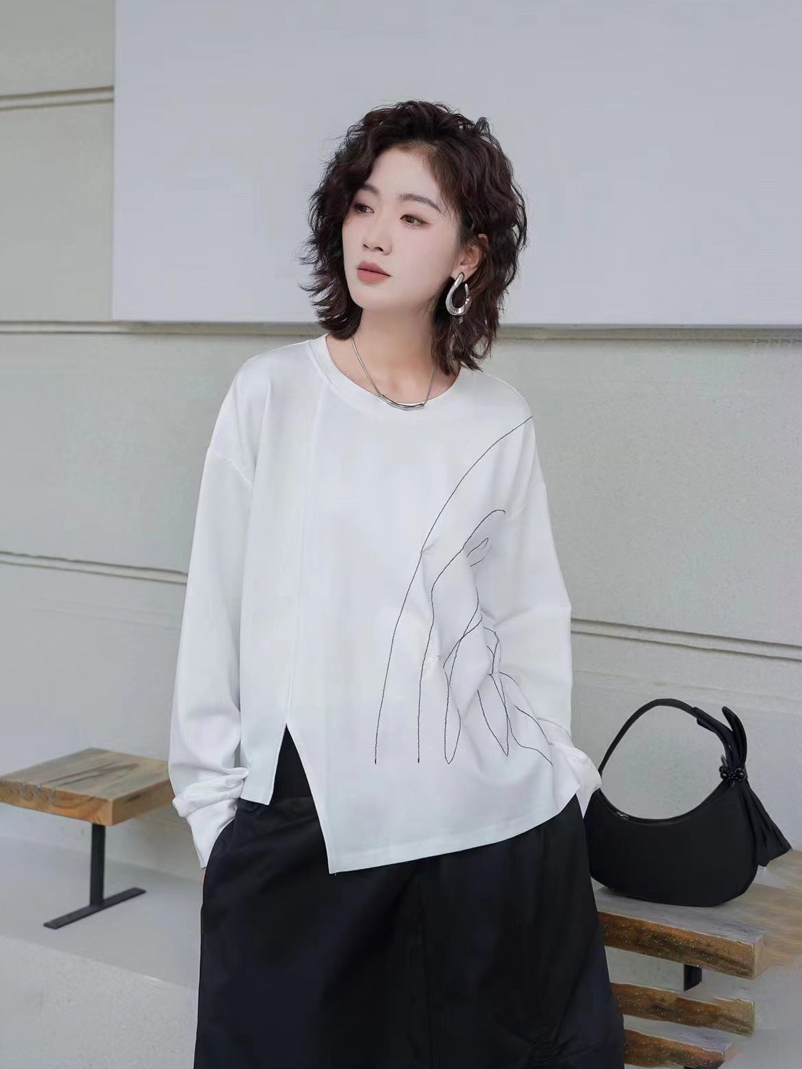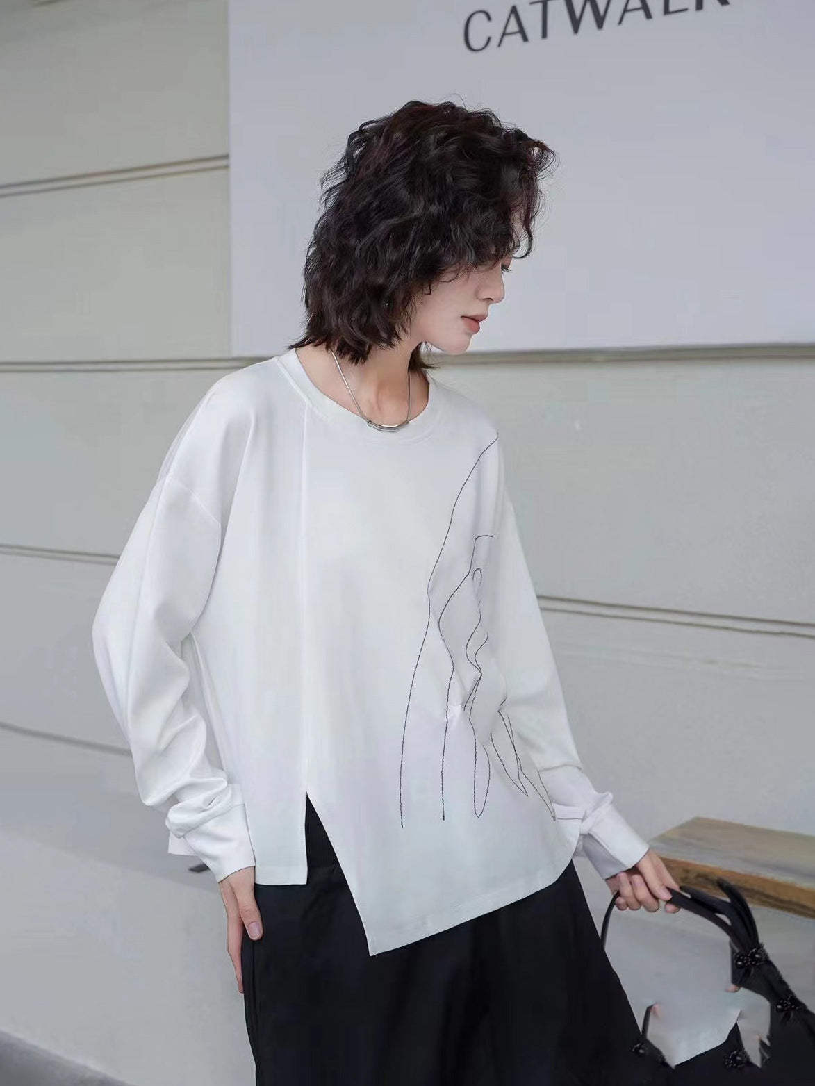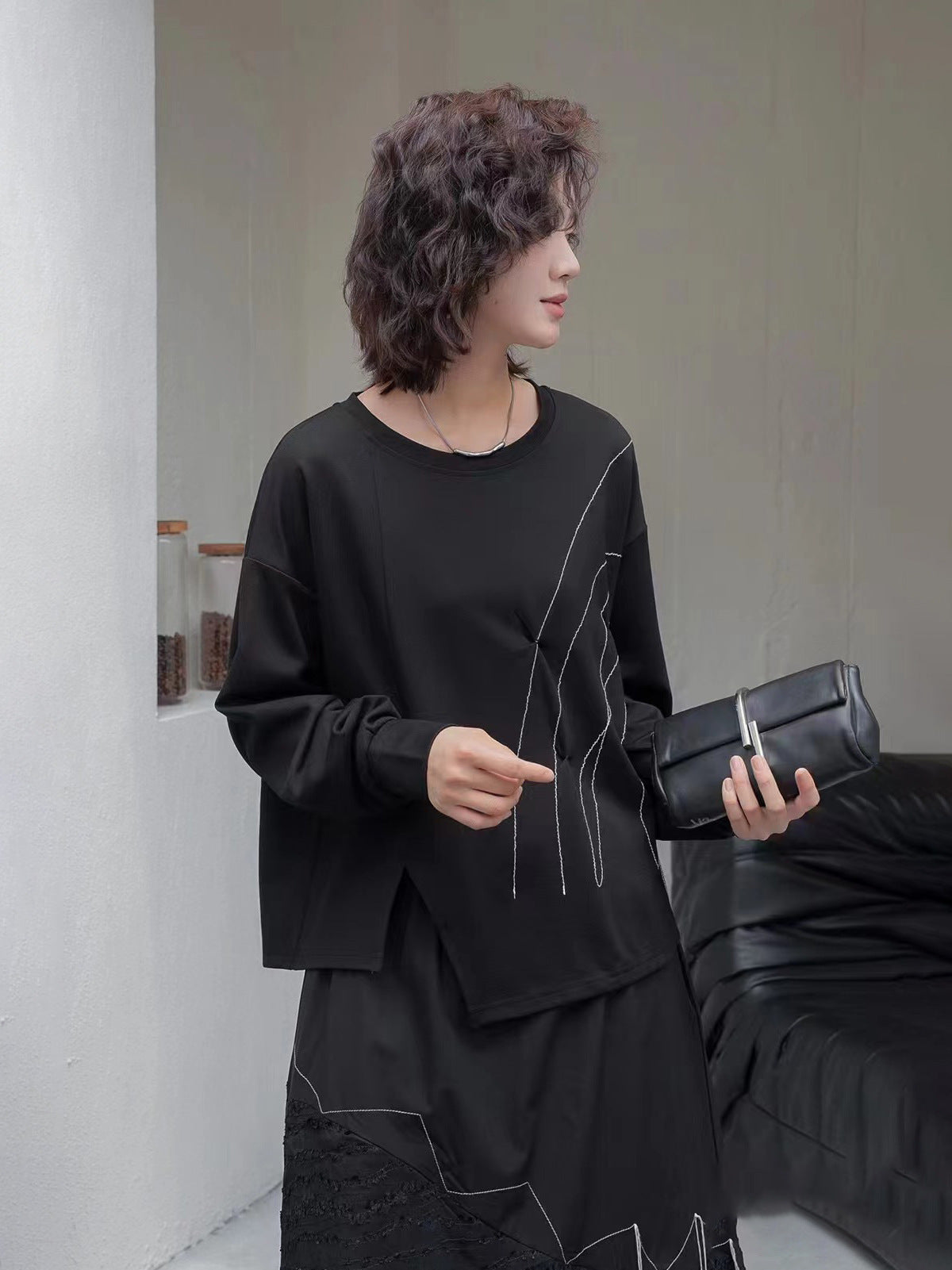 2025秋季新款/ 褶皺不規則車線寬鬆薄T恤