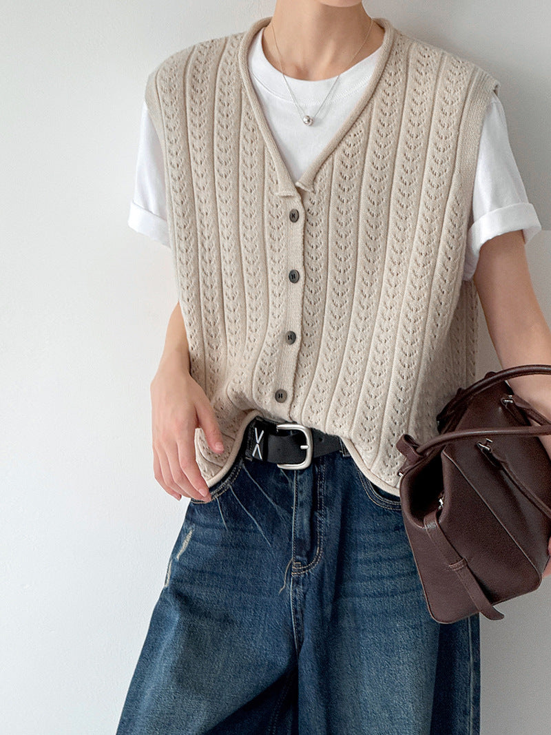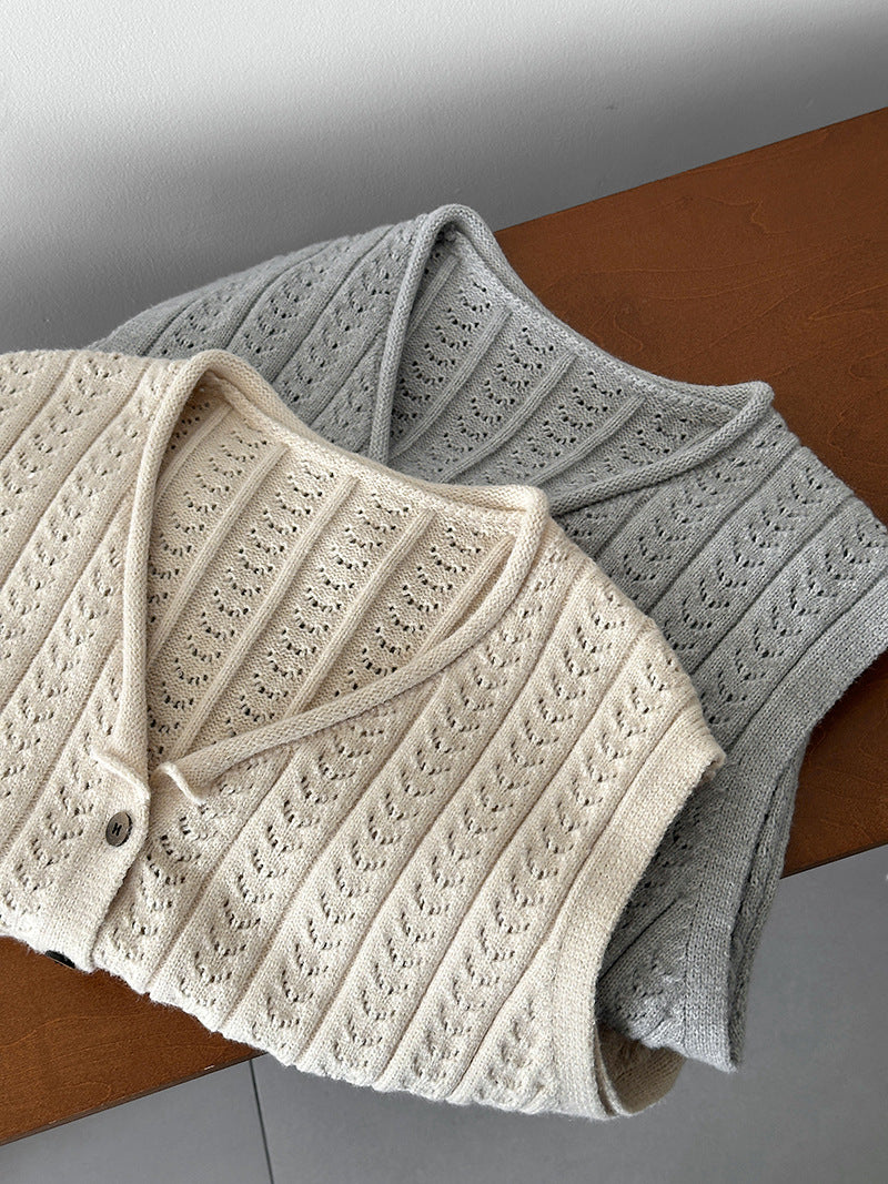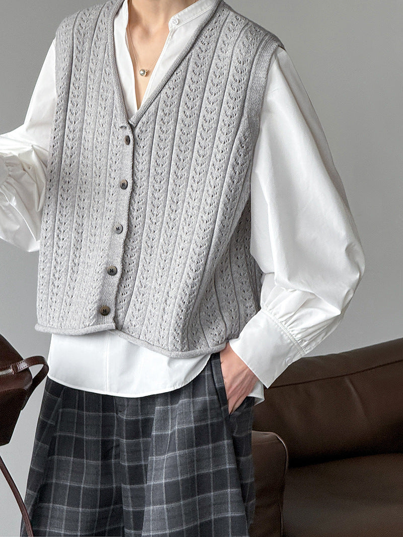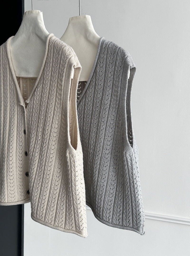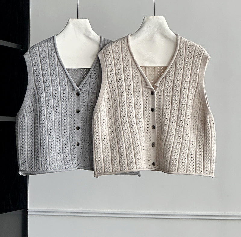 2025秋季新款/ V領開釦鏤空文青造型背心