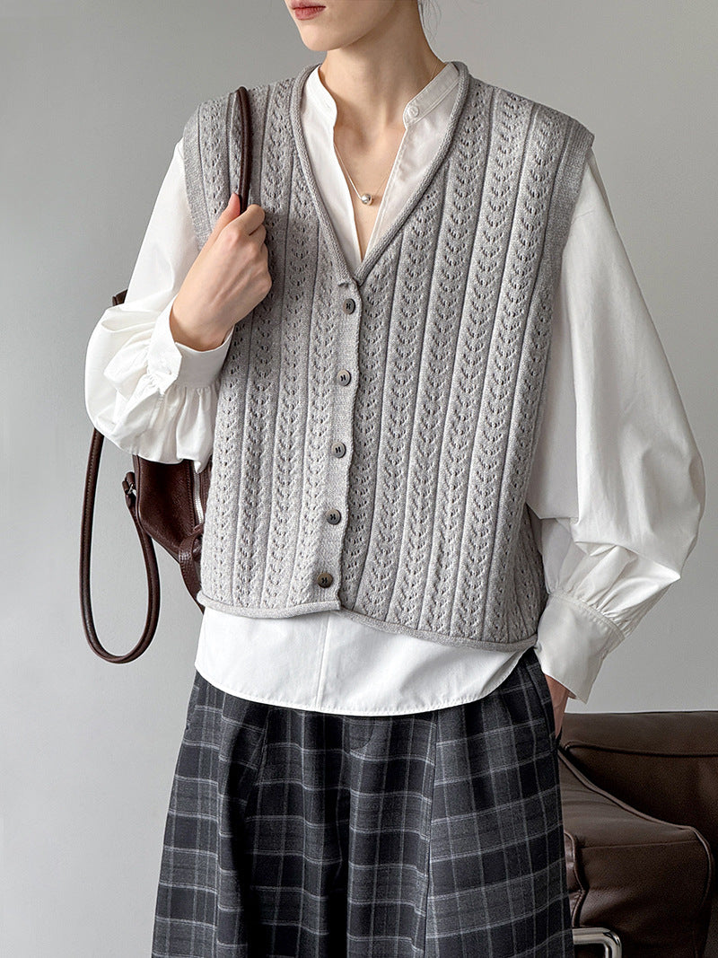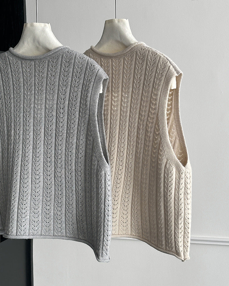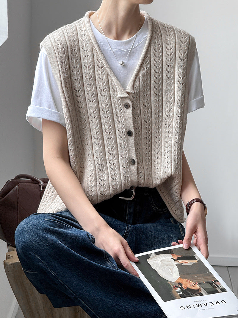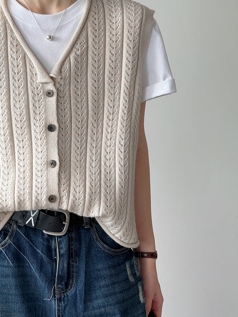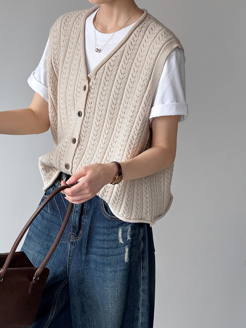 2025秋季新款/ V領開釦鏤空文青造型背心