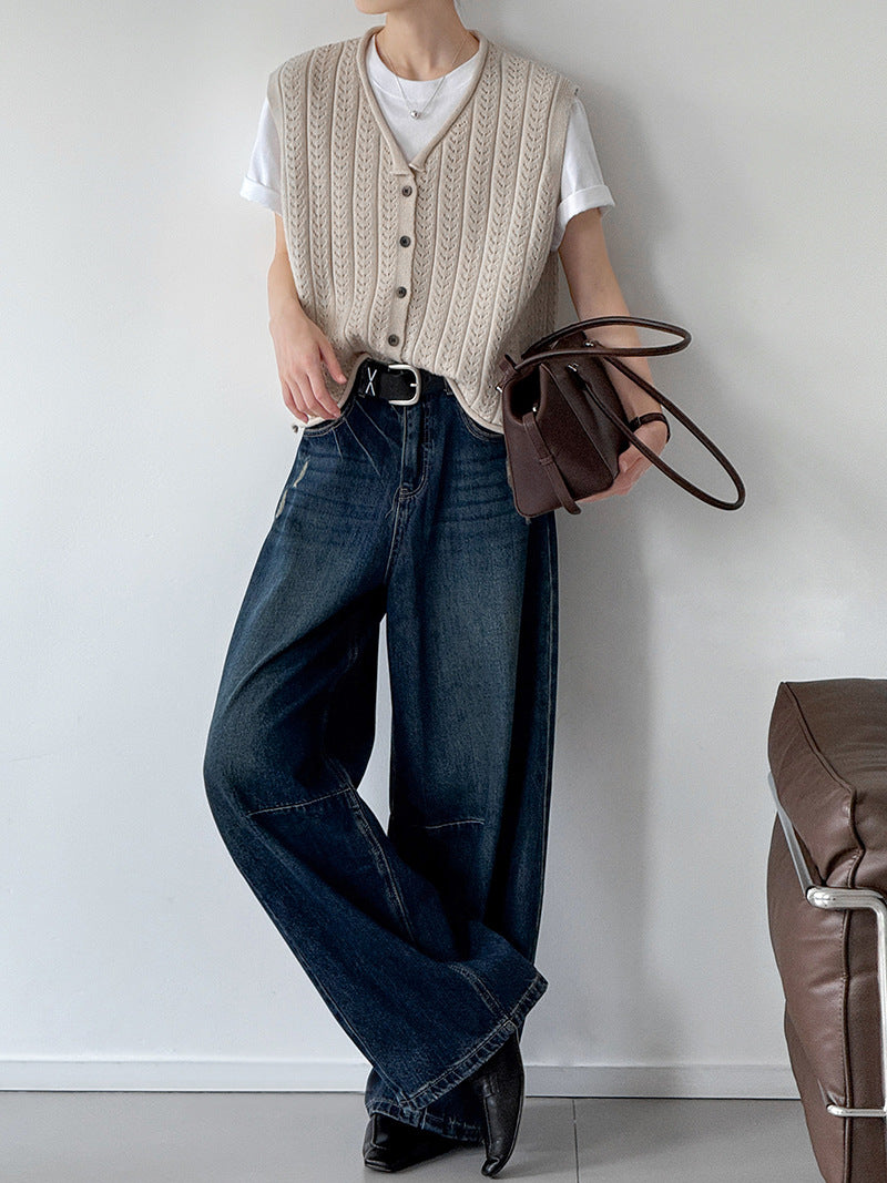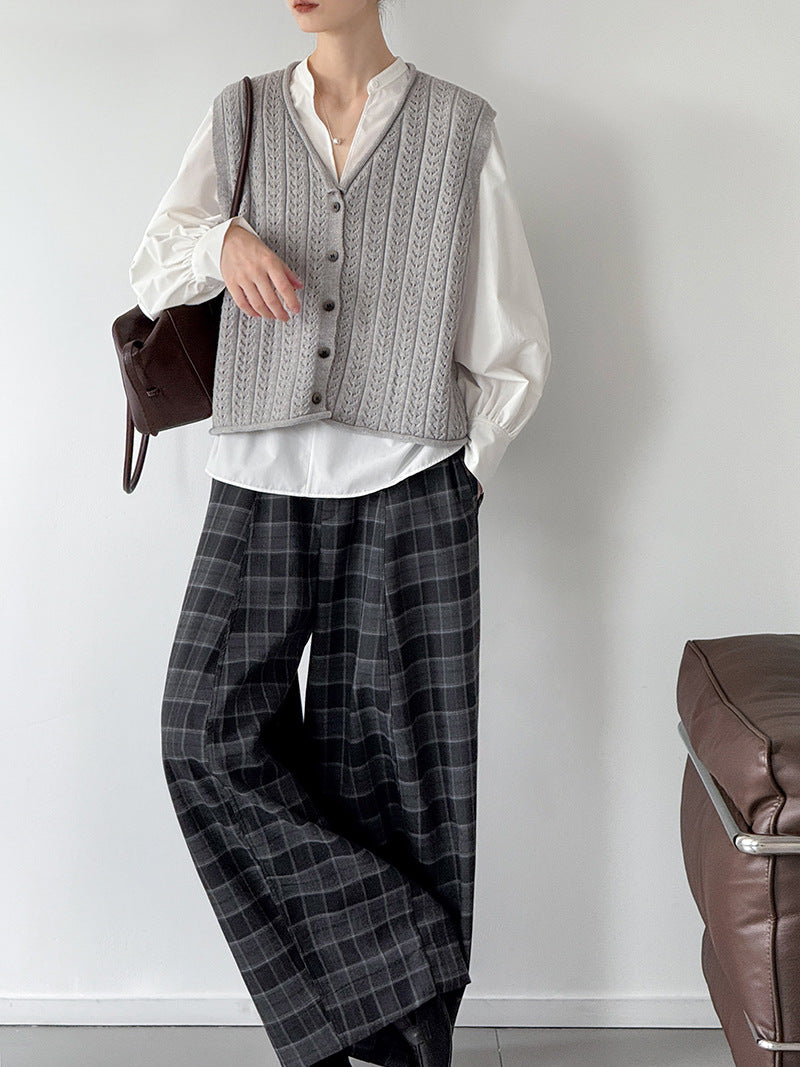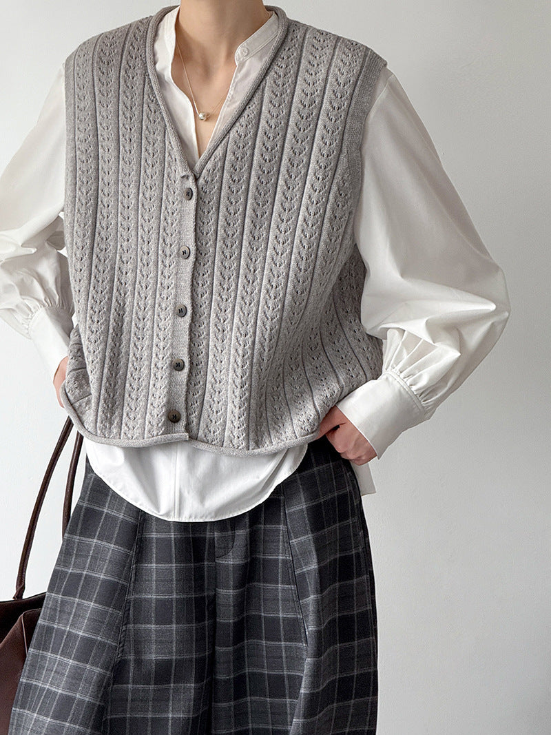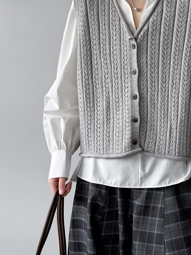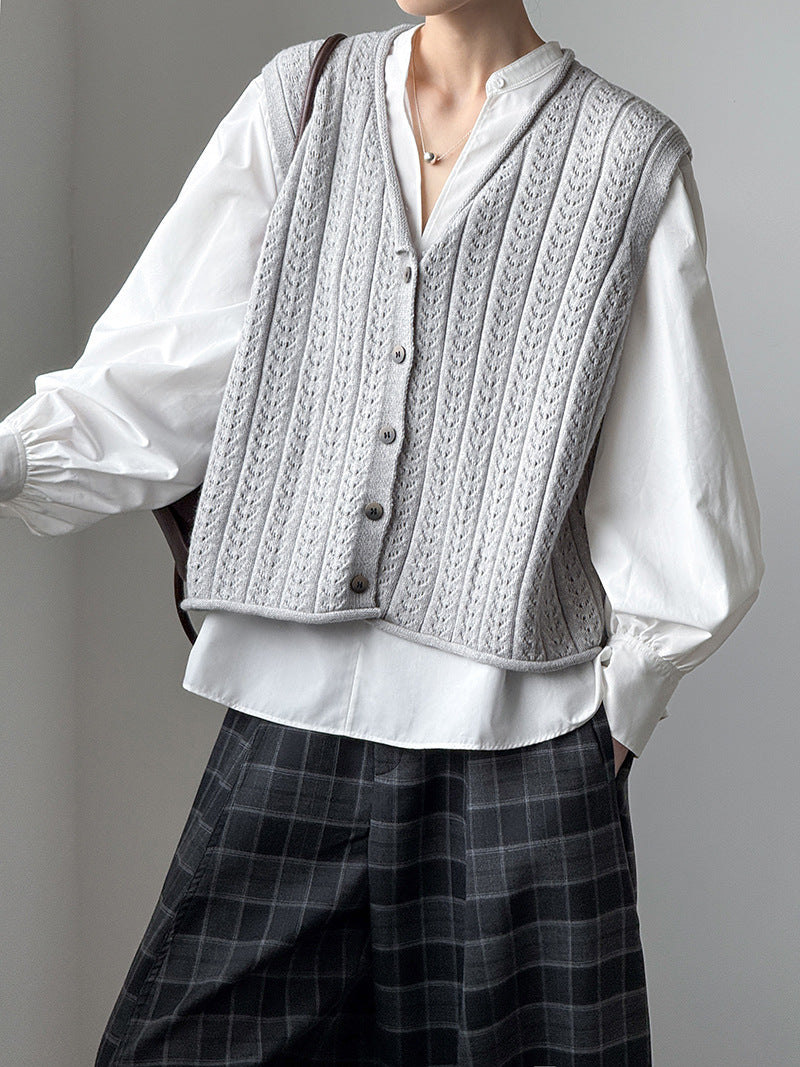 2025秋季新款/ V領開釦鏤空文青造型背心