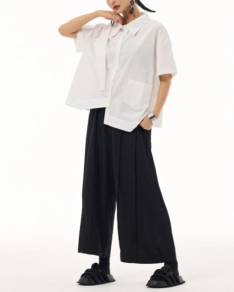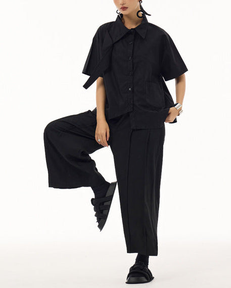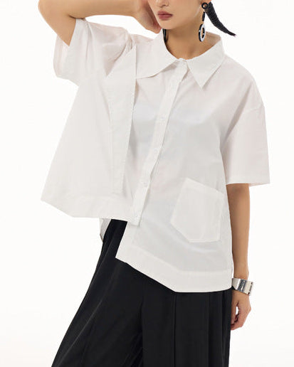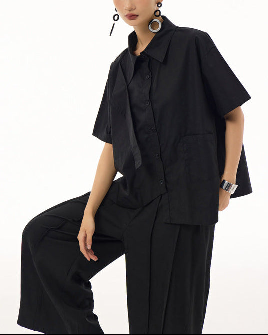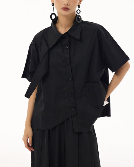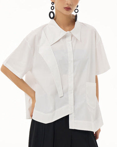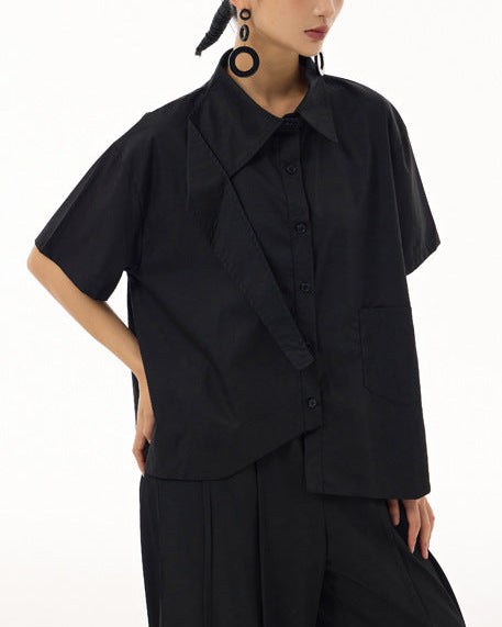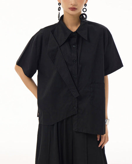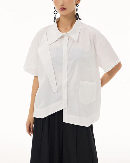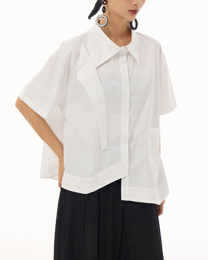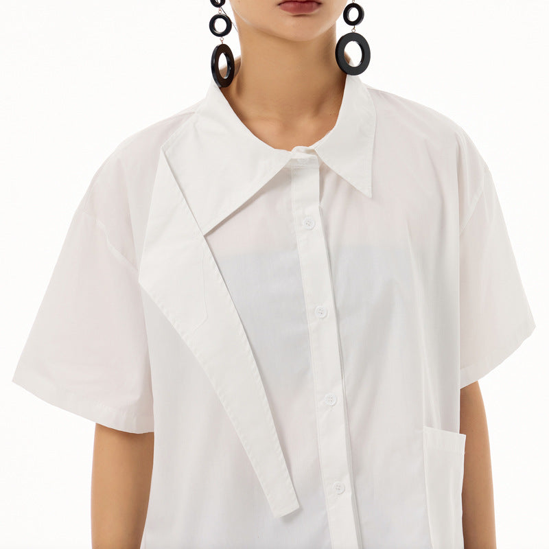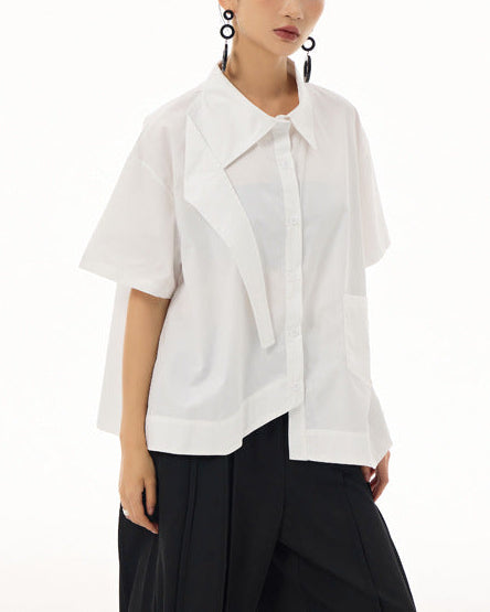◼️品名/ 飛領片設計款寬版五分袖襯衫